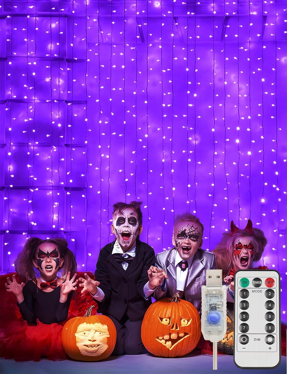 - HALLOWEEN CURTAIN LIGHTS: Add a spooky Halloween wall backdrop with purple curtain lights. Hang the purple string lights over the porch, door, window, wall, to set a mystic yet spooky Halloween decoration.