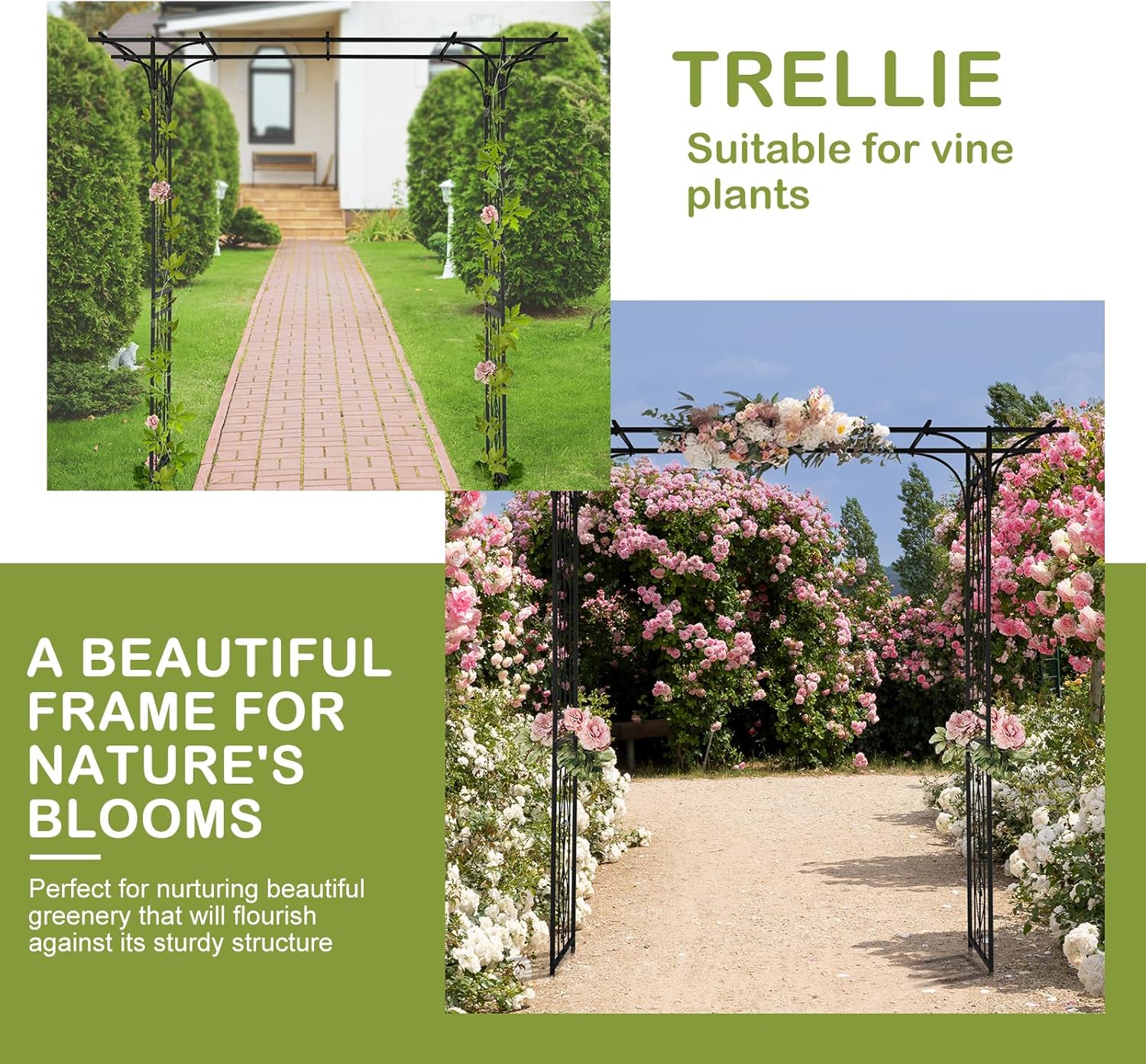 - 【GREAT FOR EVENTS】The wedding arch arbor provides an archway for climbing plants and are a graceful entrance to your garden, patio or walkway, perfectly decorating your garden and yard. This walkway trellis is also great for weddings, anniversaries, birthday party, Christmas or other important occasions decoration