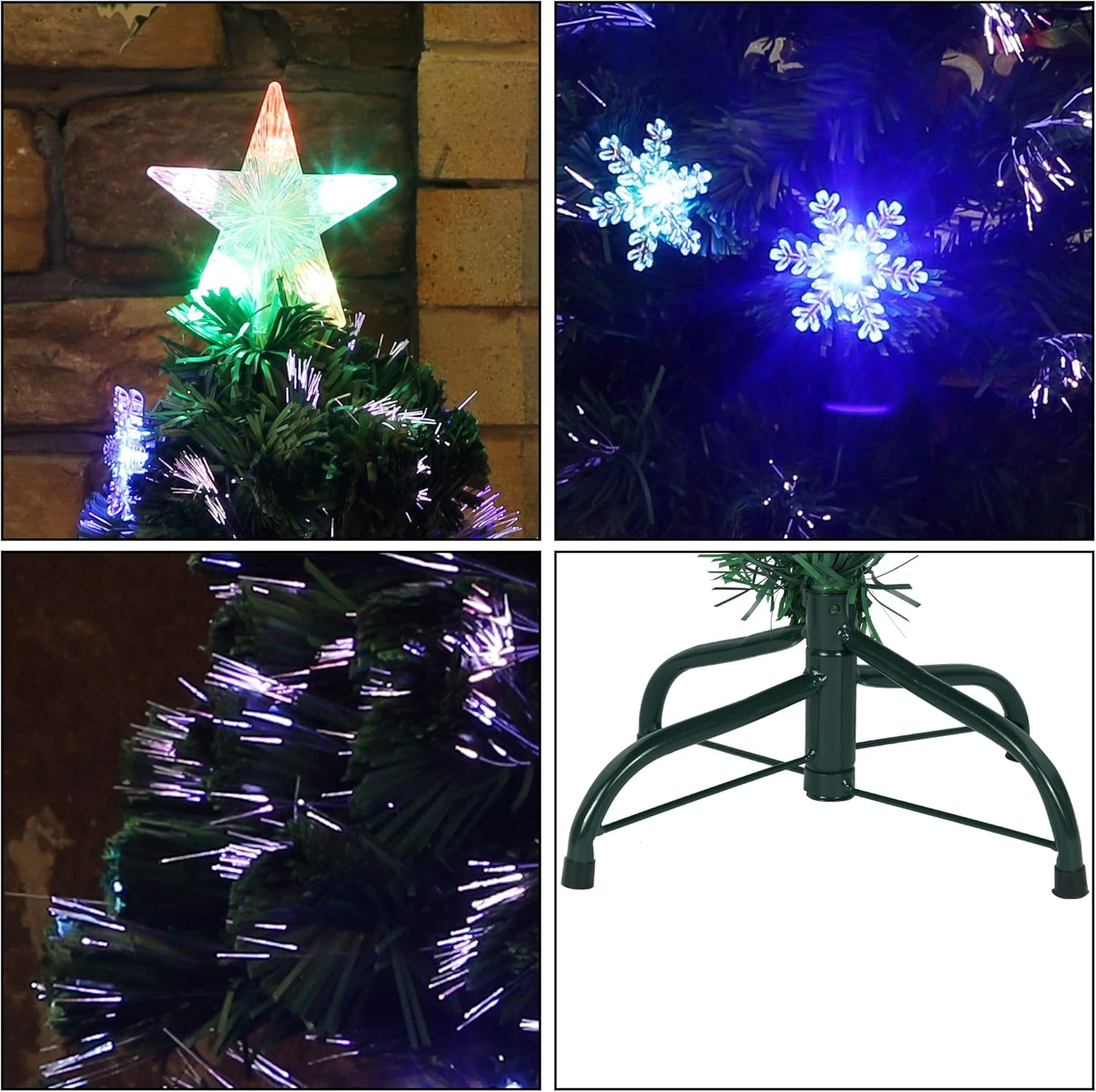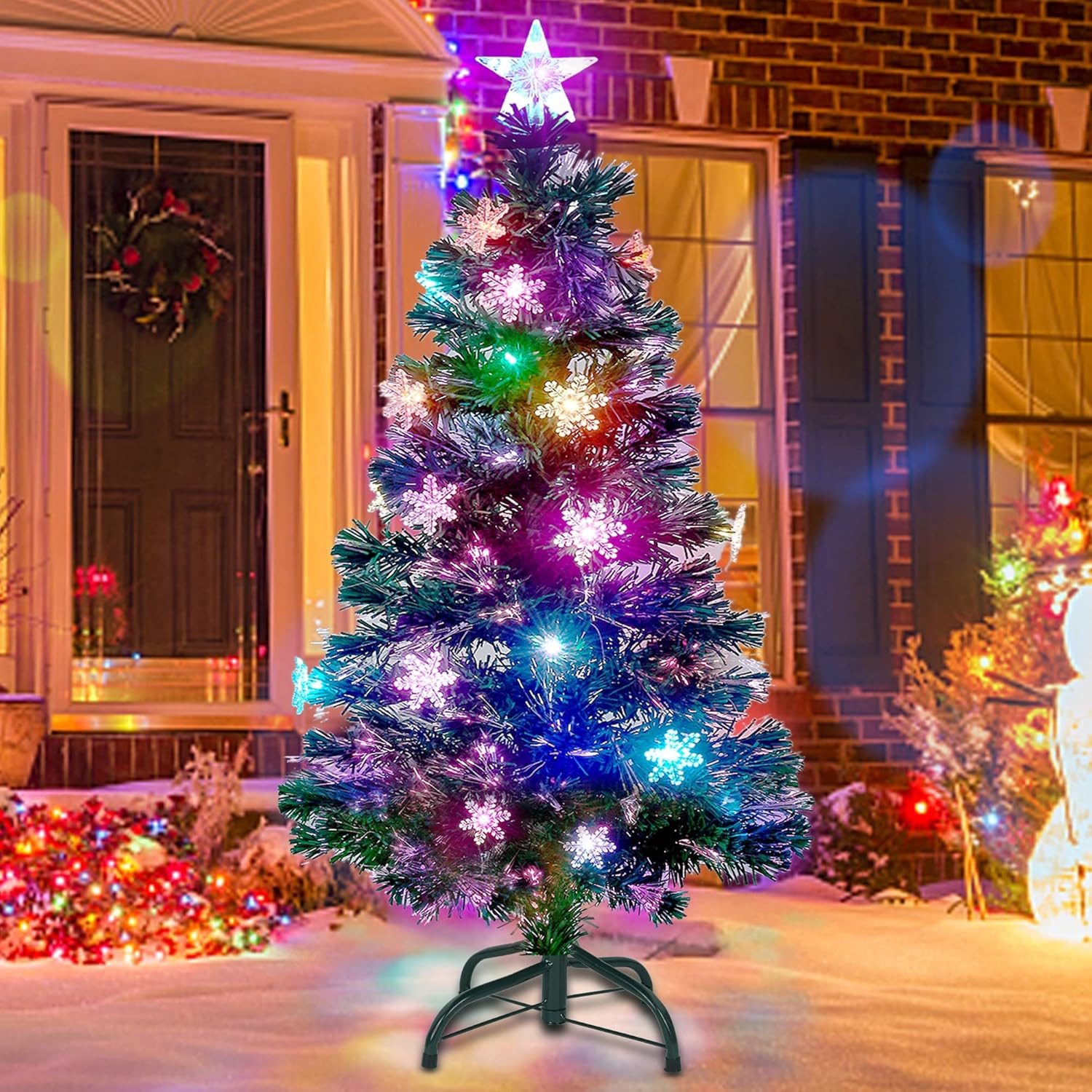 Prsildan 5 FT Artificial Christmas Tree, Pre-Lit Optical Fiber Xmas Trees with Multicolor LED Lights, Snowflakes & Top Star, Lighted Christmas Tree Holiday Home Decor