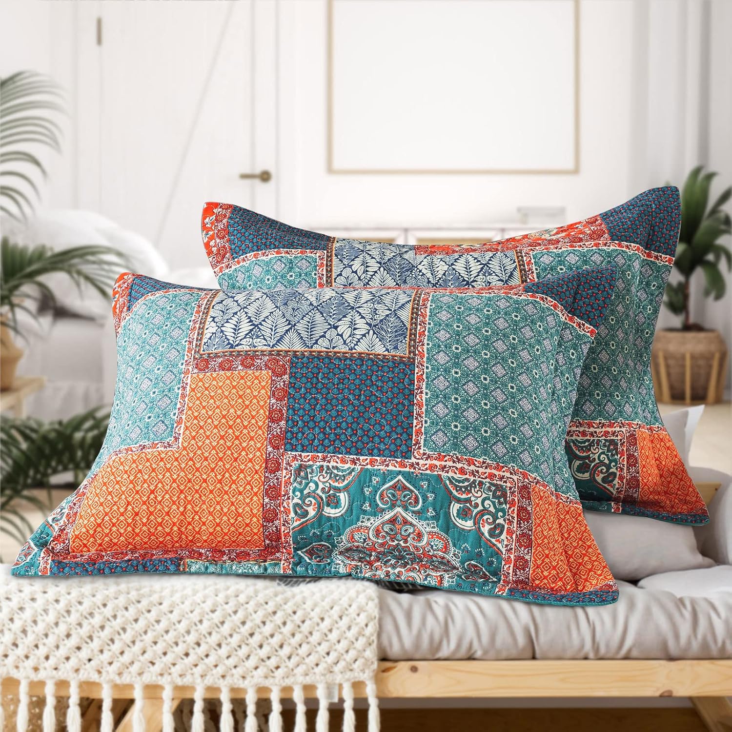- 【Quilts Queen Size】1X queen size quilt (90* 98 inch) + 2X pillowcases (20* 27+ 2 inch) with colorful chic floral pattern. Bright colors and exquisite stitching improve your home decorations and cheer up a dull bedroom. Unique design makes you maintain the trend and have a unique personality at the same time.