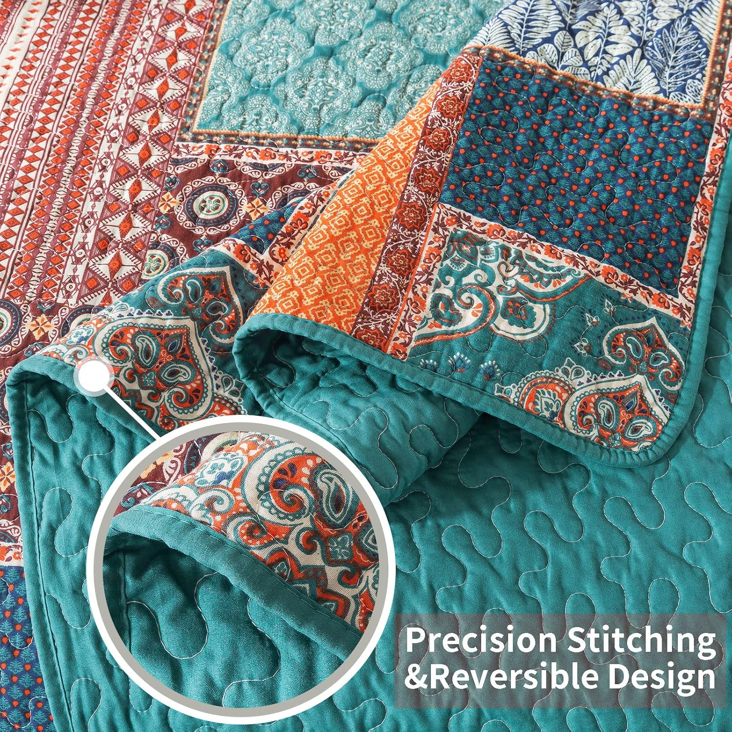 - 【Fine Handwork】Three layers of queen quilt are stitched together by fine handwork. Meticulous handmade makes the bedding sets extra firm and service life longer.