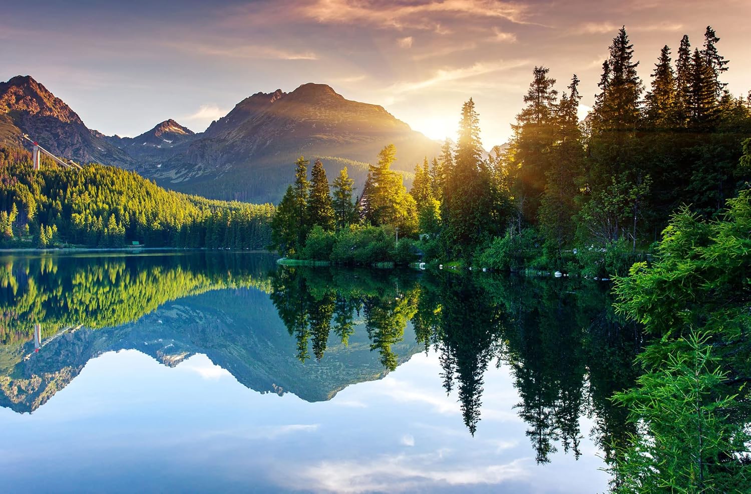 Mountain with Lake Photo Wallpaper Landscape Wall Mural for Bedroom Living Room TV Background Sofa Wall (not self-Adhesive)