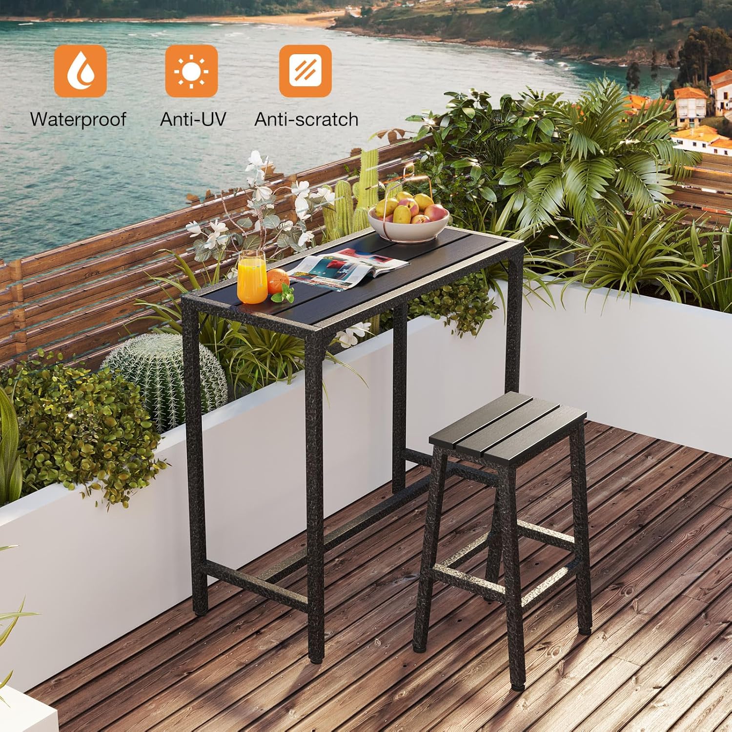 - ☀️【Solid & Triangular Metal Frame】 The triangular frame support structure design makes the patio bar tables more stable and durable both indoors and ourdoors, the metal frame is reinforced and gives your feet a better rest.