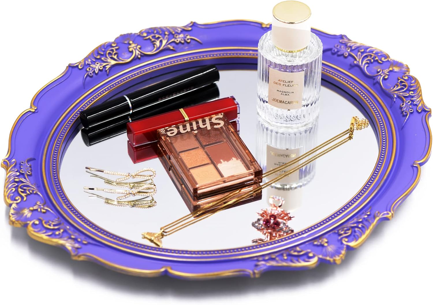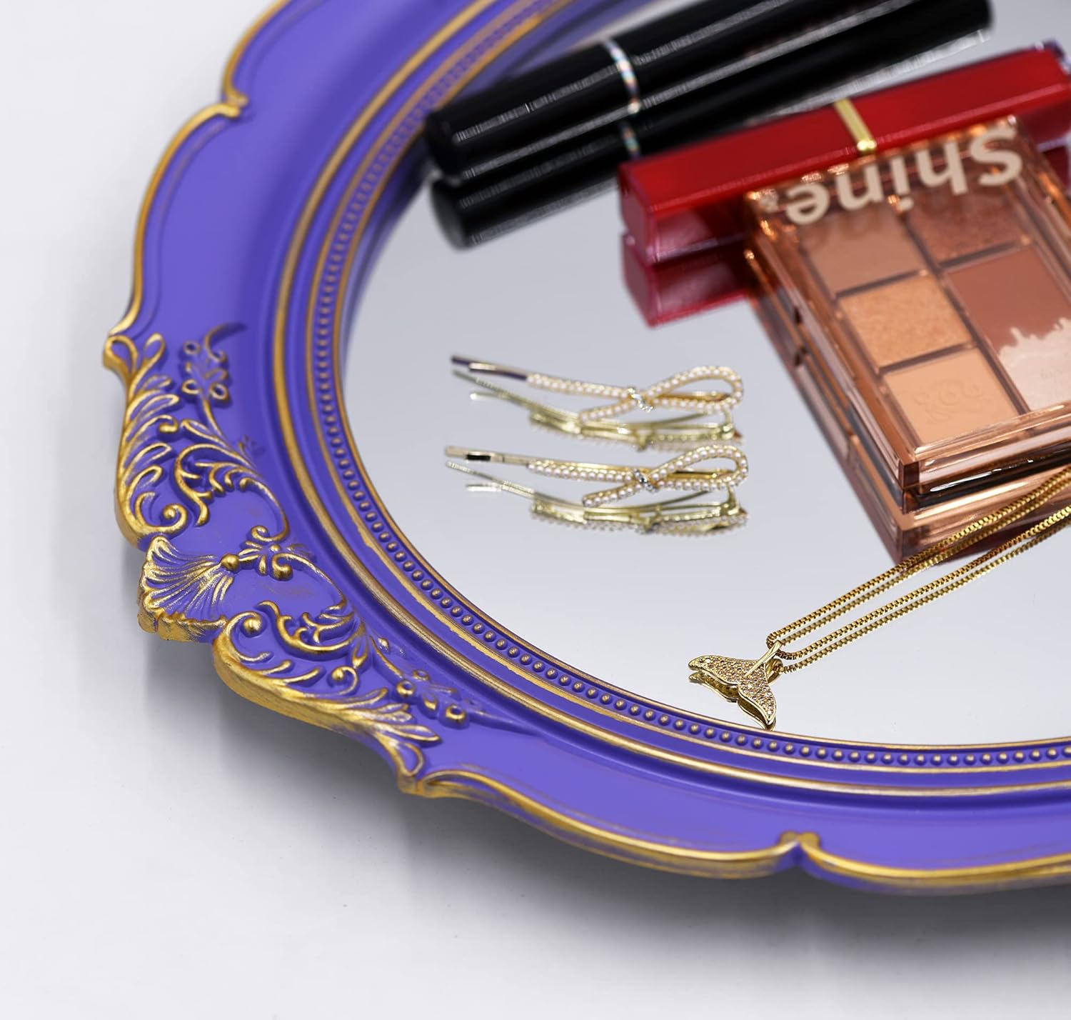 - HIGH QUALITY CRAFTSMANSHIP: Constructed of Plastic and framed in a soft purple finish, this mirror exhibits fine attention to detail and durability to last for years.