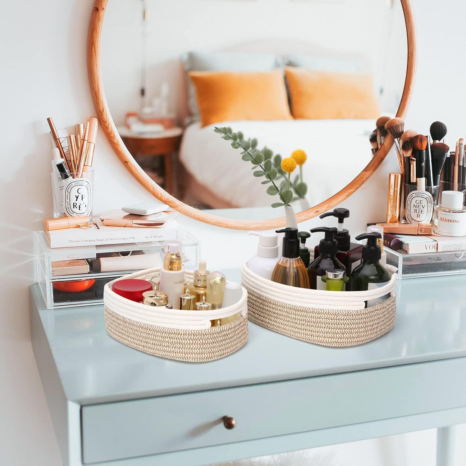 - Attentive Design: This may be the perfect solution if you are looking for an attractive and functional woven cotton rope basket. We put the basket flat in the box to avoid sagging and deformation. The thoughtful design brings convenience and efficiency to your life. 💖NOTE: PLEASE CONFIRM THE SIZE BEFORE PURCHASING