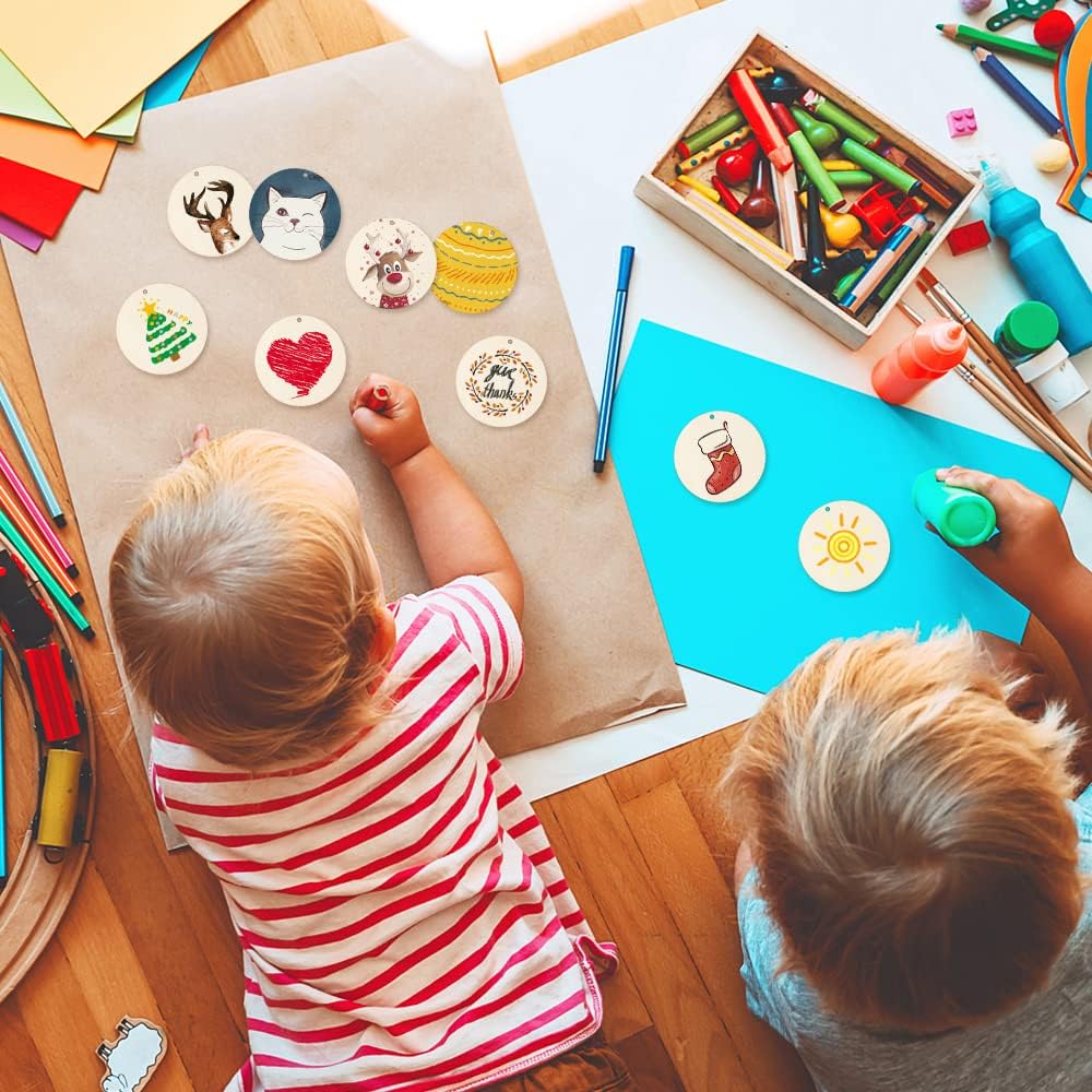 - ENJOY YOUR DIY FUN: Unfinished wood slices can DIY with different tools for Christmas ornaments, painting, drawing, writing, carving, etc