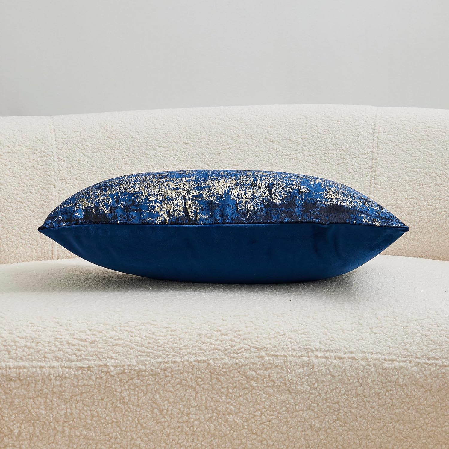 - Premium Jacquard & Velvet Pillow Cover : Crafted with 70% polyester 30% viscose jacquard weave (front) in navy gold, featuring a soft metallic gleam for a sophisticated textured effect. Reverses to 100% polyester navy velvet (back) for cloud-like softness. Two looks in one—instantly elevate your sofas, beds, or accent chairs.