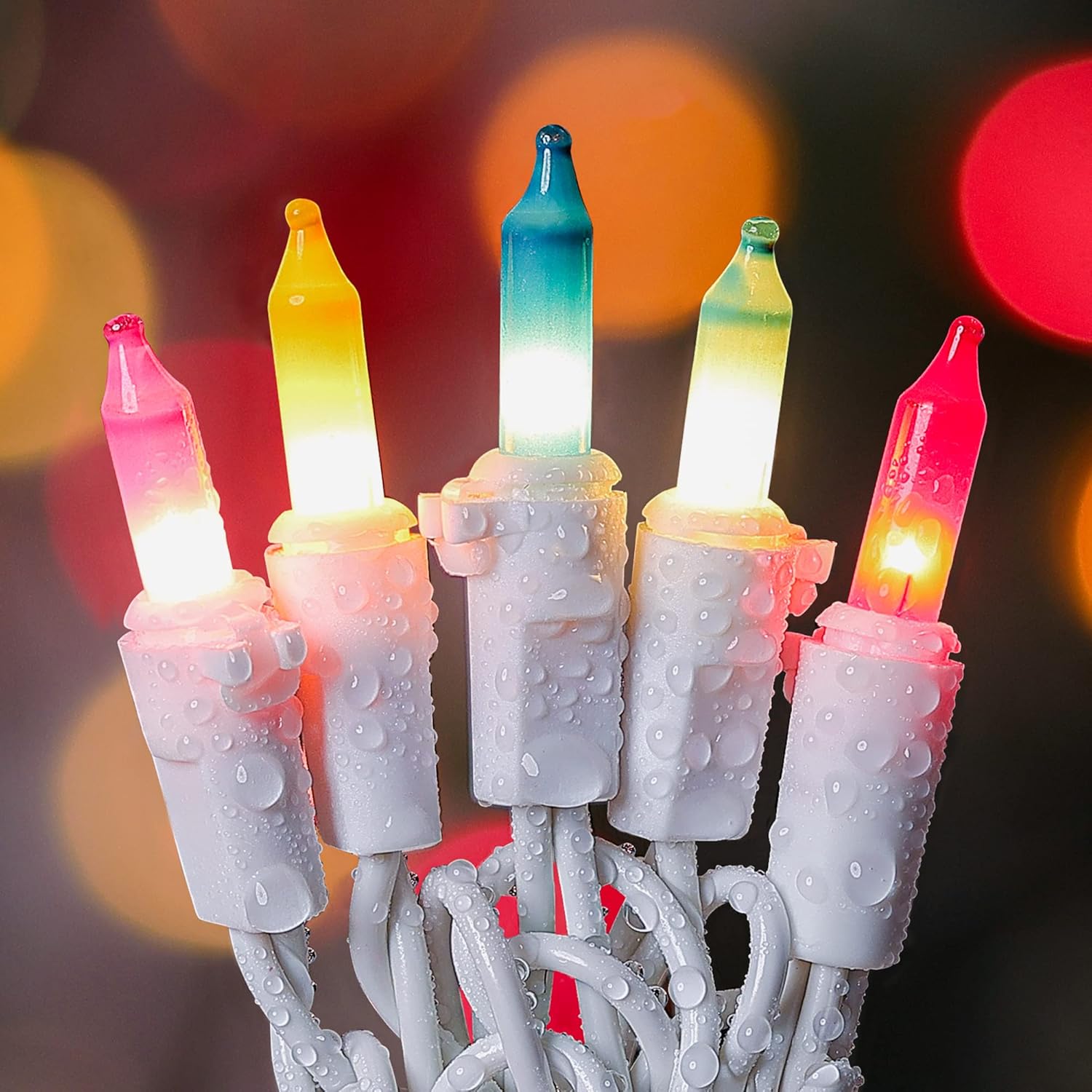 - 🌲Safe to Use : 50count Multicolor Christmas string lights are UL certified and the quality is guaranteed. Our Christmas string lights have built-in fuses, which will protect the short circuit caused by the damaged wire and can effectively prevent the possibility of fire. High quality use rest assured. Warm tips: Please kindly protect these string lights from immersing in water and keep the plug dry.