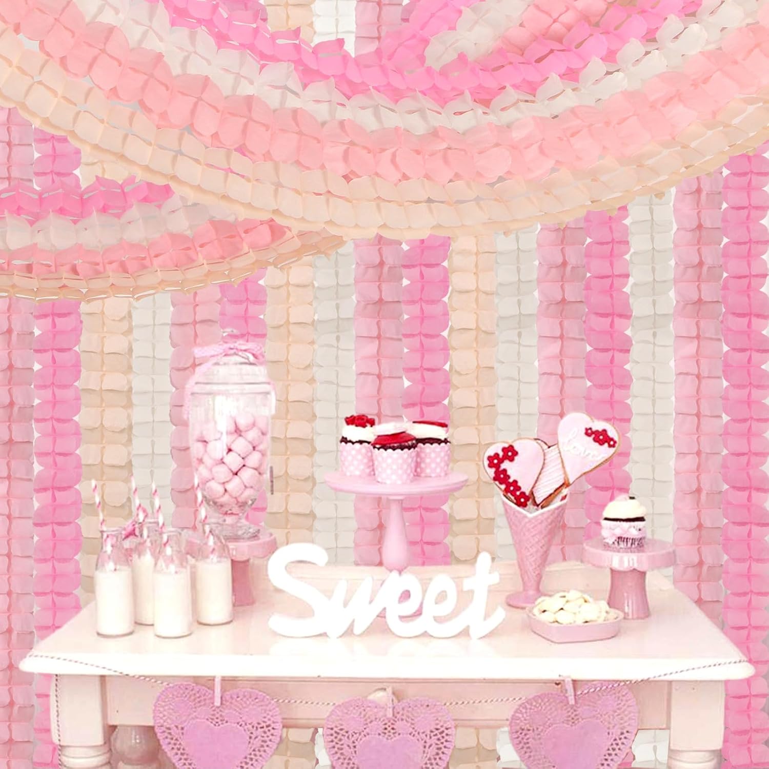 - EASY TO USE: The party streamers has been pre-strung, just open the package to hang it directly and pull the rope on both sides of the garland, which can really save your time and energy.