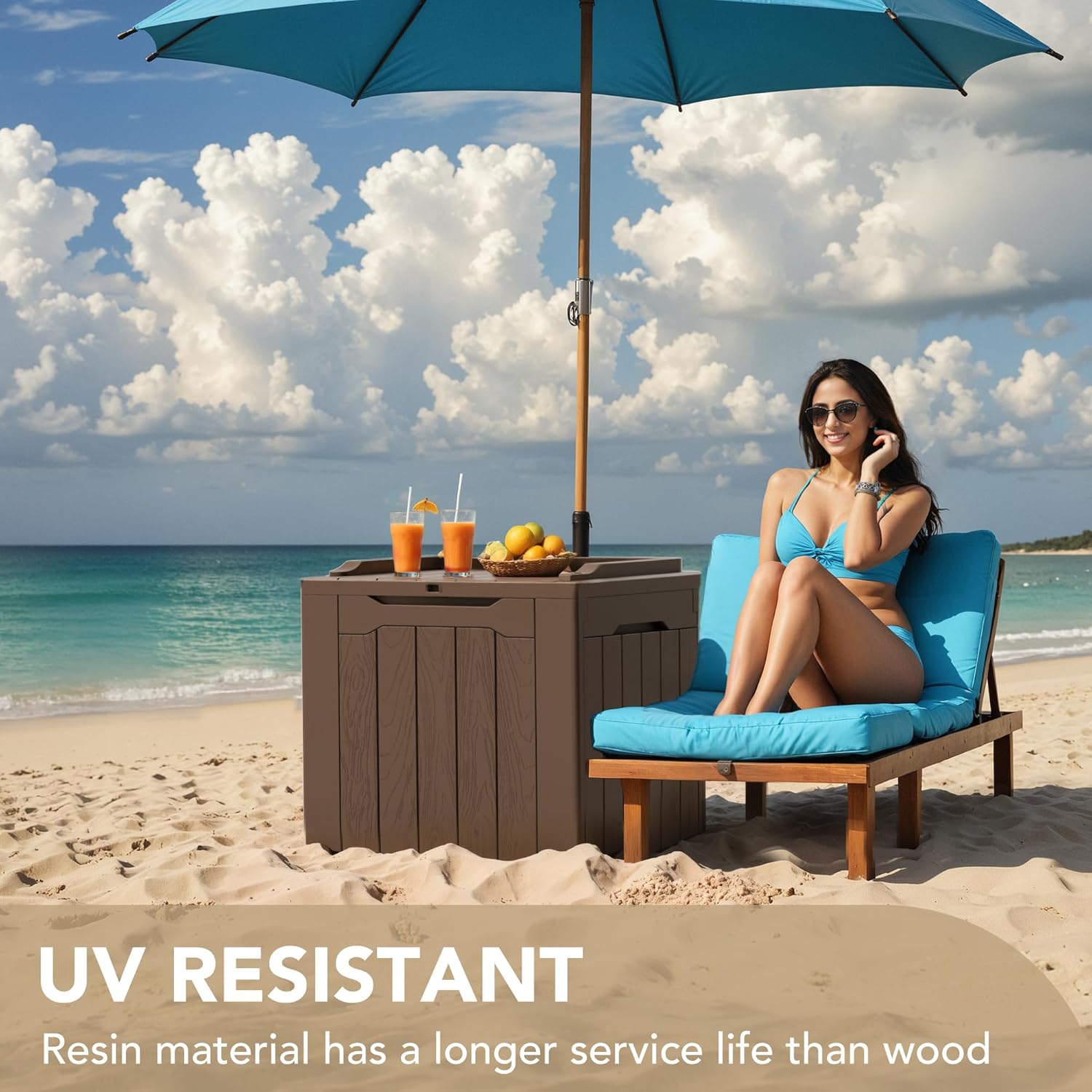 - [Light & Solid] Made of a high density resin material, it is stable, waterproof and UV resistant. The net weight of this deck box is only 8.8 pounds