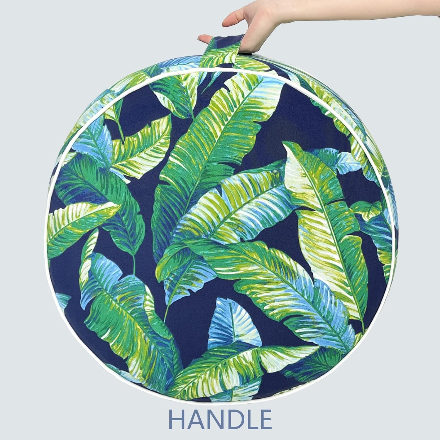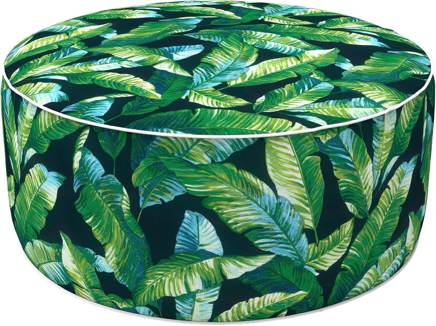 LVTXIII Inflatable Stool Ottoman Footrest with Handle, All Weather Footrest Seat, Indoor or Outdoor Pouf for Home Patio Garden and Camping Use, D31 xH14, Large Round, Hanalei Lagoon