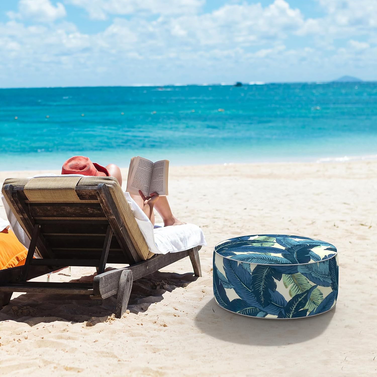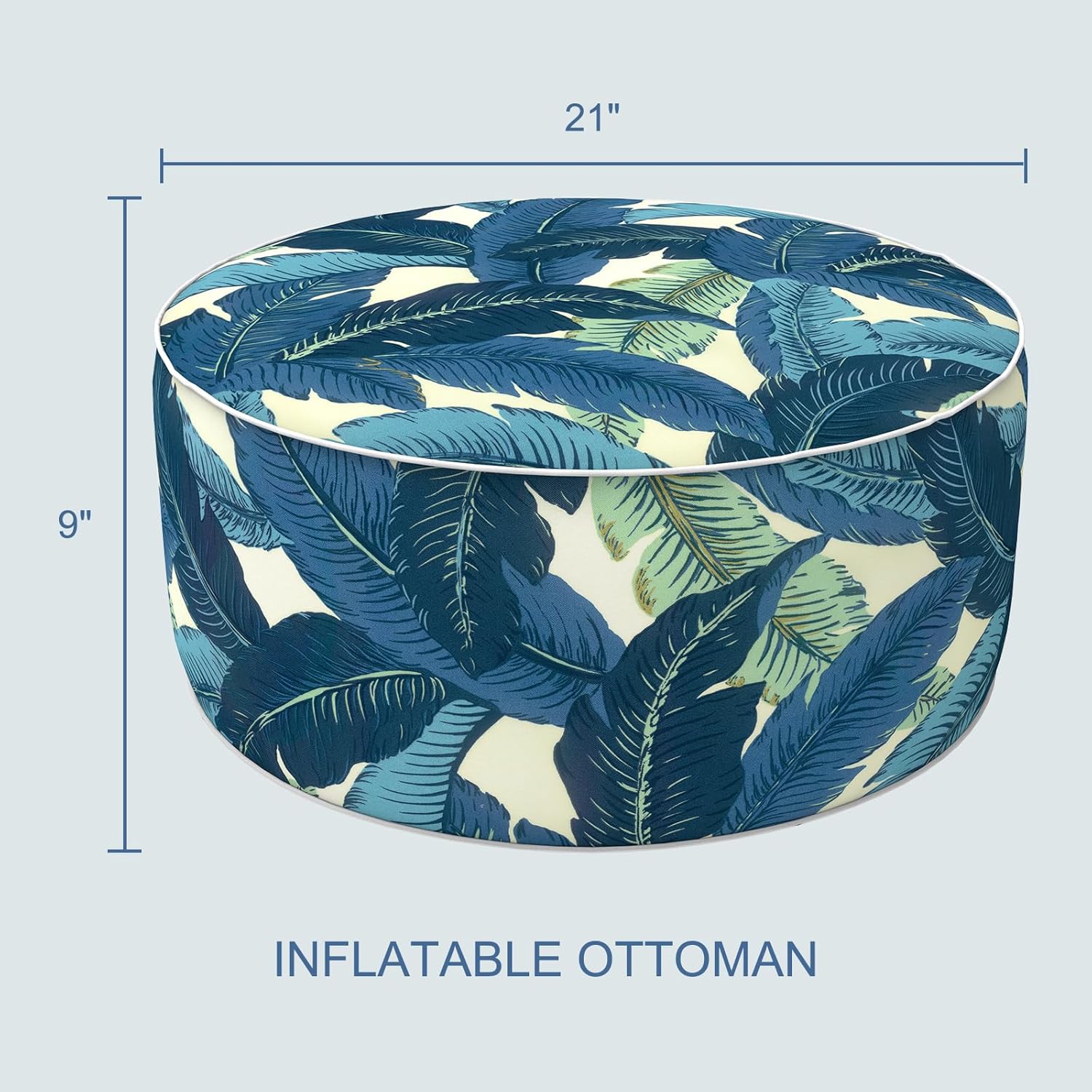 LVTXIII Inflatable Stool Ottoman Footrest with Handle, All Weather Foot Rest, Indoor or Outdoor Use for Home Patio Garden and Camping, D21 x H9, Swaying Palms Blue