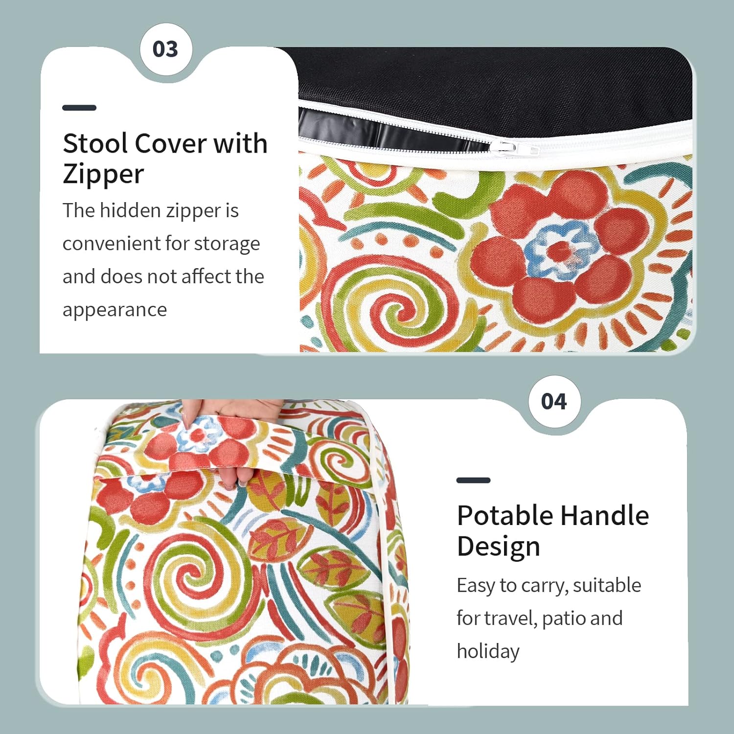 Inflatable Ottoman Stool D21 xH9 for Outdoor/Indoor Use, Water Repellent Patio Foot Rest Stool with Portable Handle,Round Pouf Ottoman Suitable for Garden,Deck and Camping - Flower Red