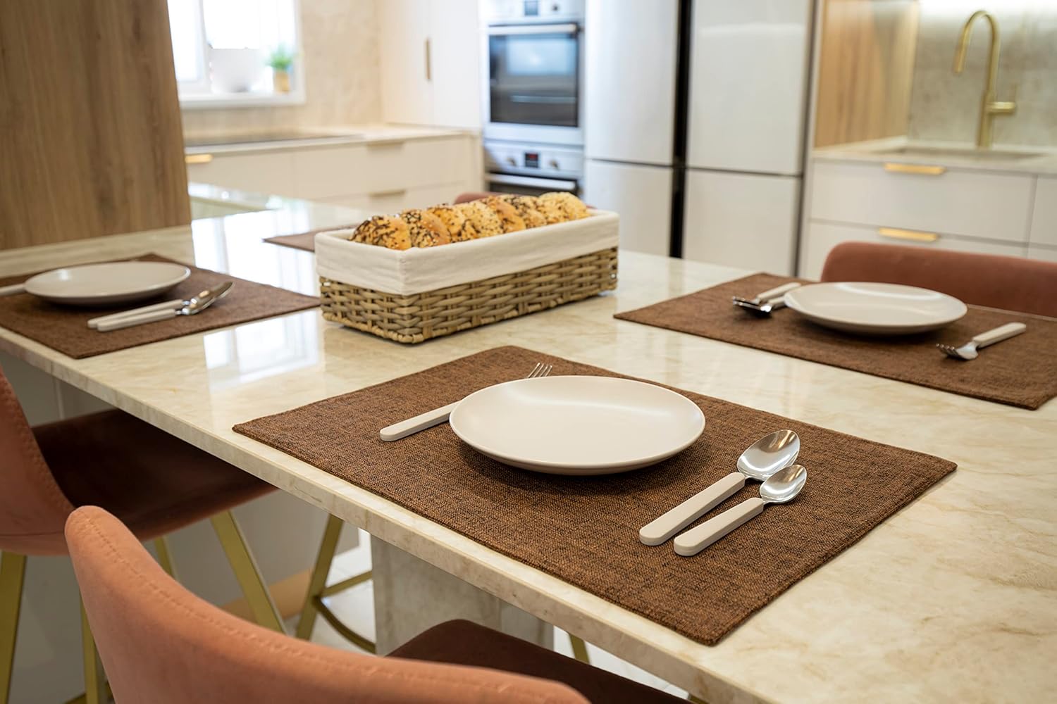 Placemat Set-Washable Place Mats for Parties, Elegant Table Mats for Kitchen Table, Set of 4 Dining Table Placemats, Heat-Resistant Cloth Placemats for Indoor and Outdoor,13x19-Brown