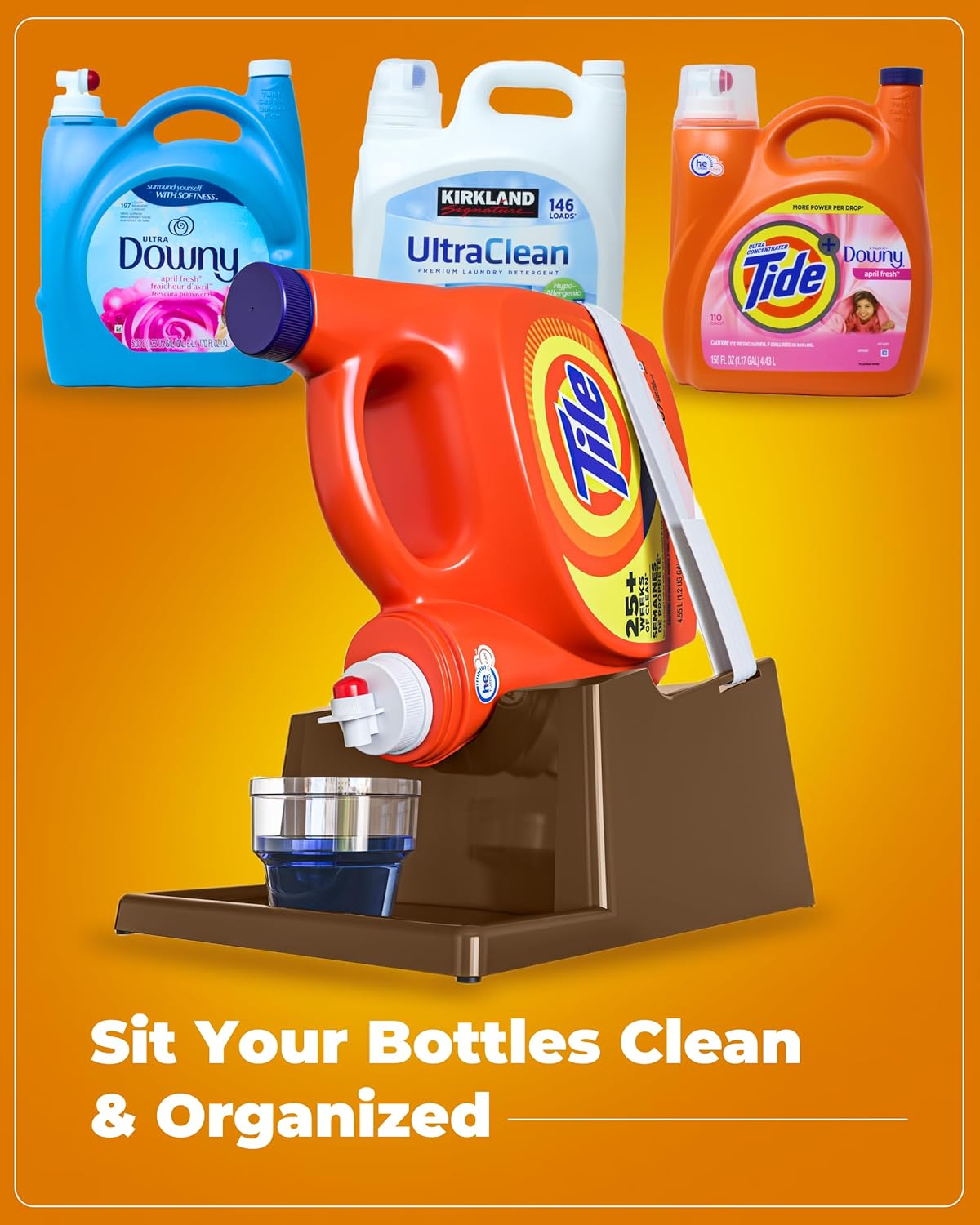 - [Effortless Soap Dispensing:] The angled design of our laundry soap organizer allows for easy soap pouring without the need to tilt or lift heavy detergent bottles, saving you time and effort during laundry.