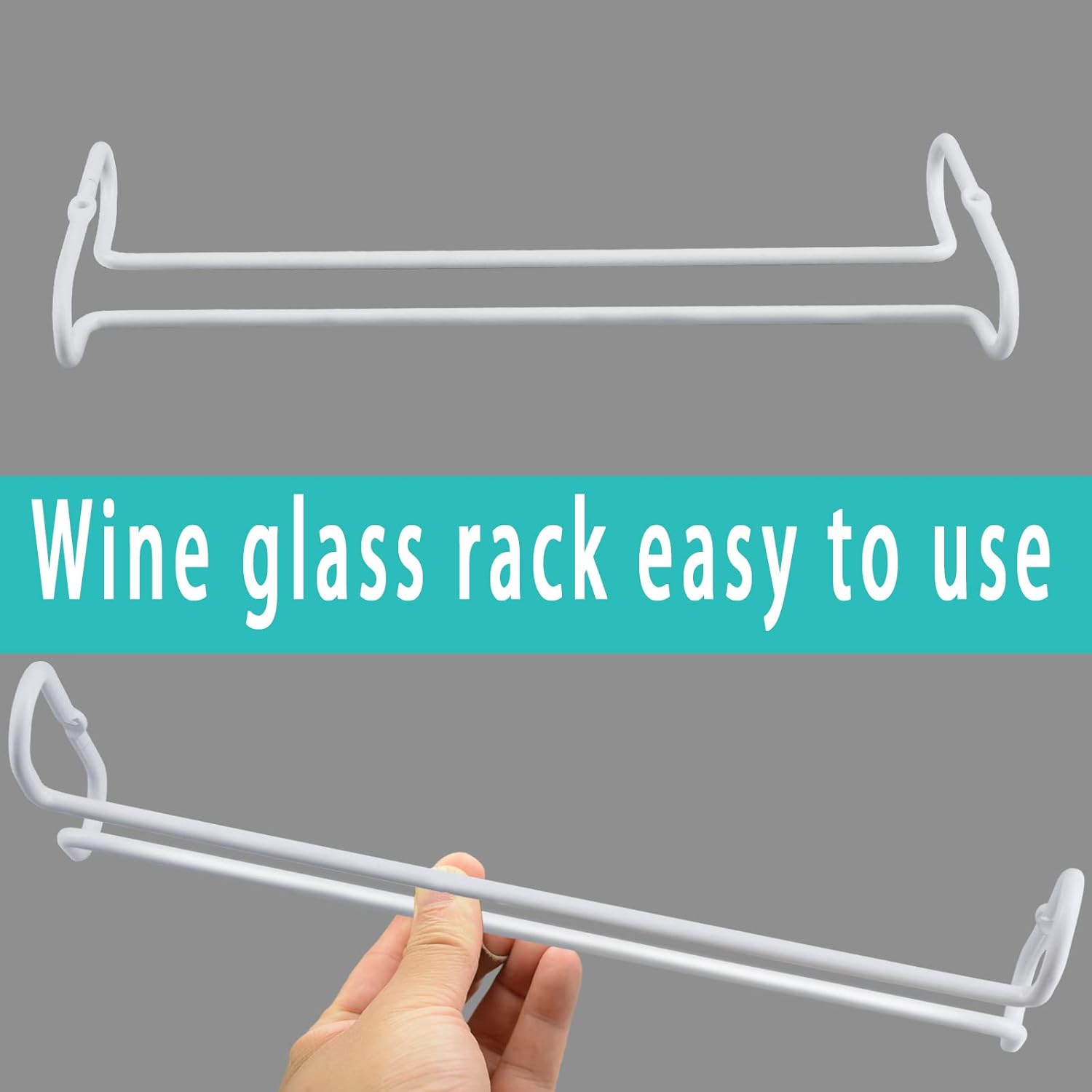 - wine glass rack under cabinet have to 4 sets per pack, Outer package:10.63*4.72*3.14inches(27*12*8cm). Product size: 10.4*4.25*1.18 inches (26*10.8*3cm).