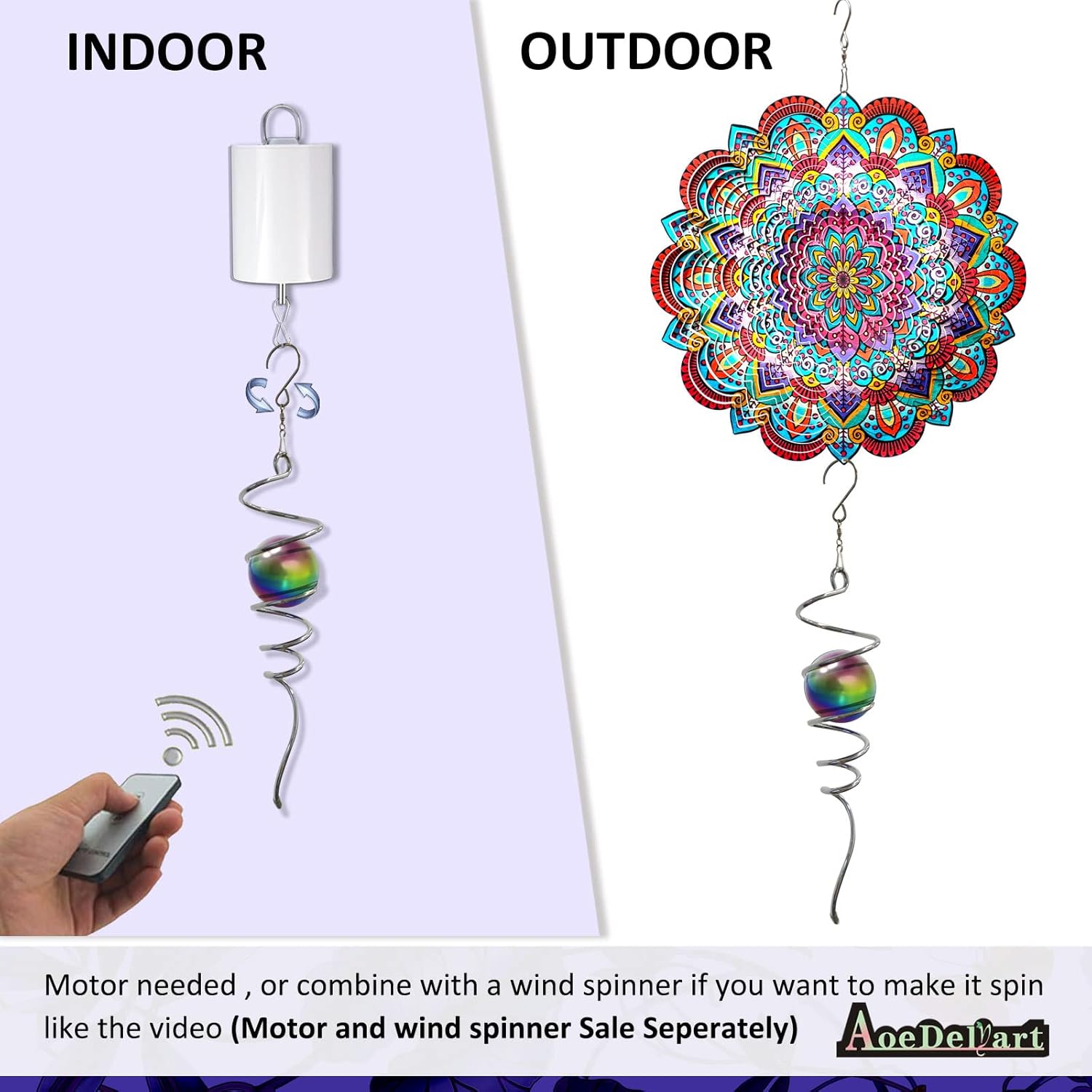 - 【Easy To Position】The Spiral can't spin by itself ,if you want to make it spin like the video ,need add 1pc motor (not include) ,or combine it with a wind spinner or any rotatable hanging ornament to help it rotate. Come with 1pc 2 inch colored Stainless Steel orb(not paint), 1pc silver color spiral tail twister,and 1pc swivel hook accessory, ready to hang and enjoy.