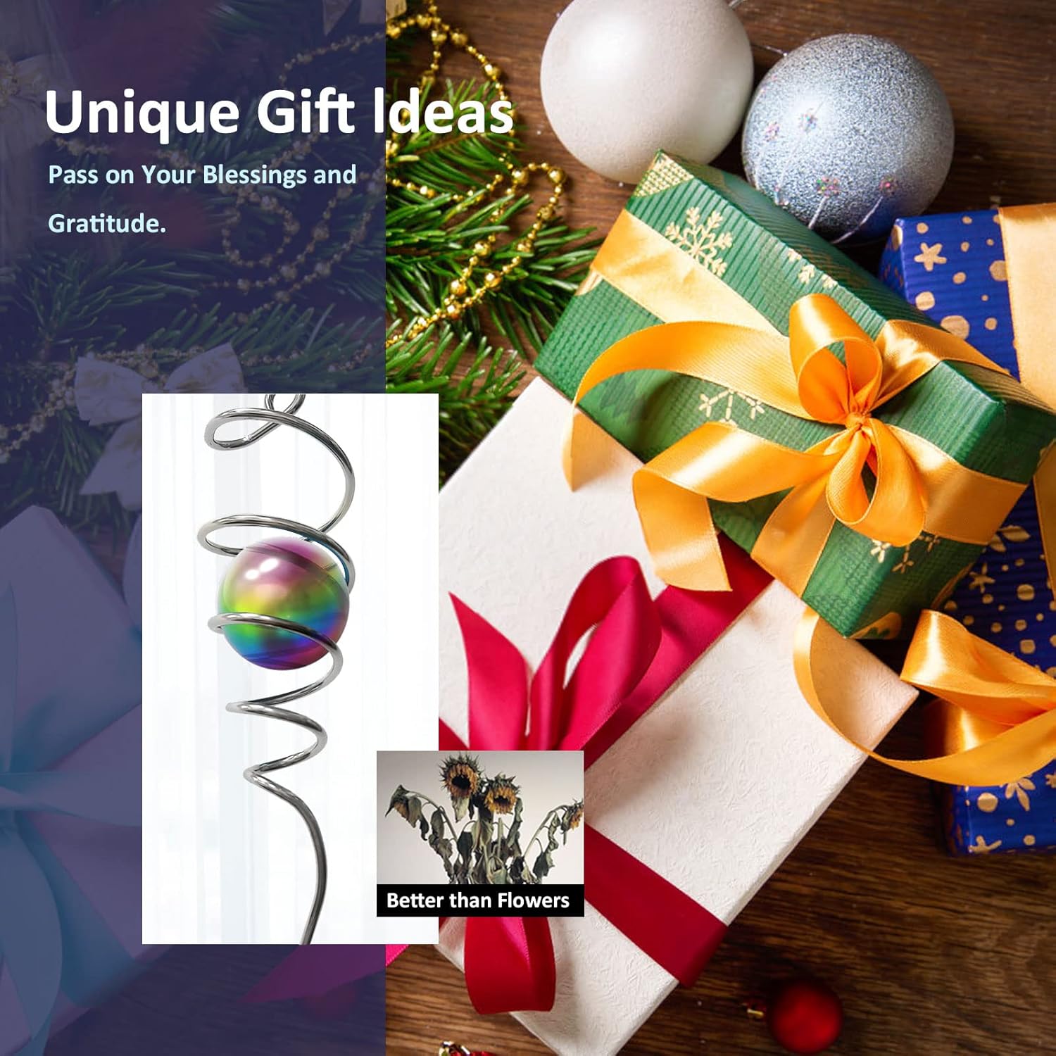 - 【Unique Spiral Design】The gazing ball spiral is an unique hanging ornament ,Also it can help to stabilize 3D wind spinners or yard decor from swing when it rotate.When the spiral tail rotates to the left, the glass ball seems to move upwards,when the spiral tail rotates to the right, the glass ball seems to moves downward,the glass ball seems to like floating and dancing in air, presenting a magical optical illusion!