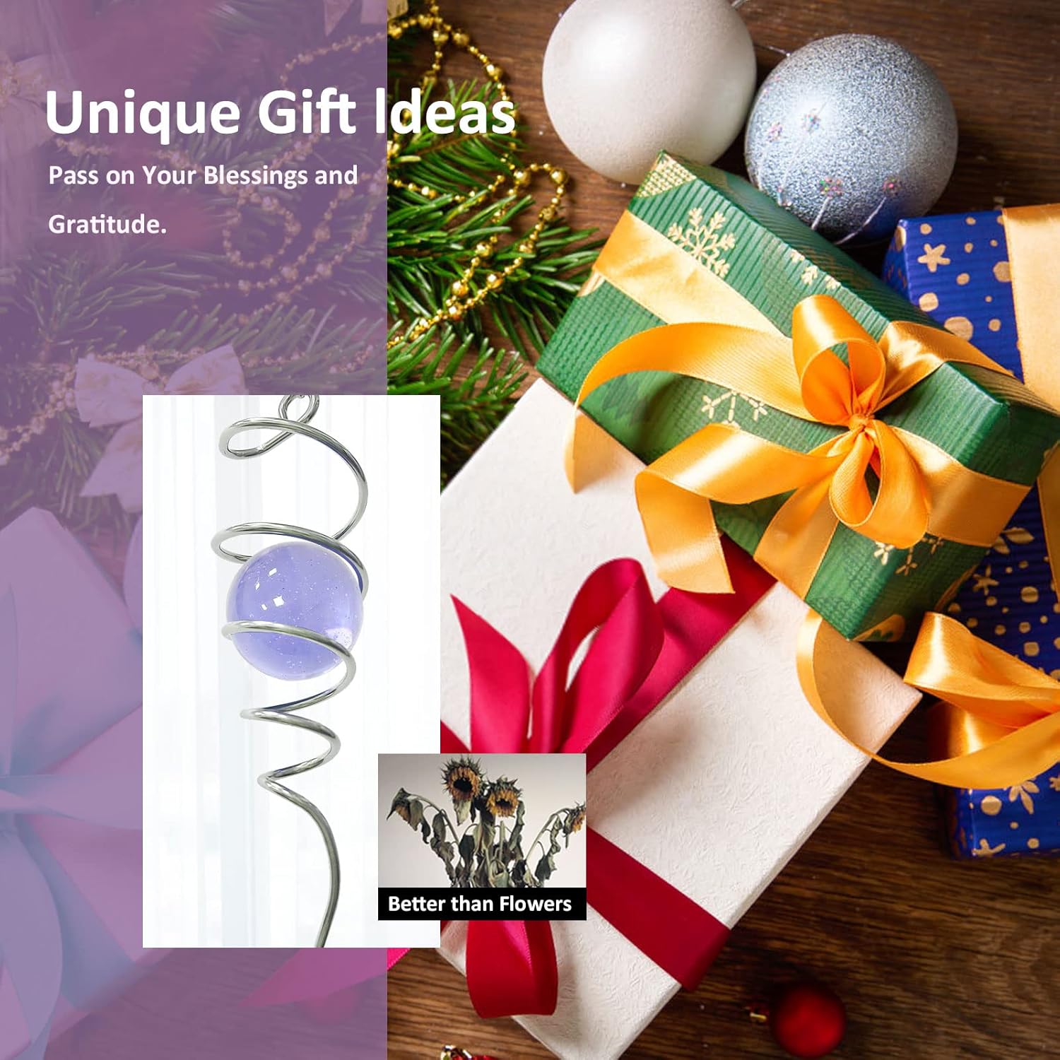 - 【Easy To Position】The Spiral can't spin by itself ,if you want to make it spin like the video ,need add 1pc motor (not include) ,or combine it with a wind spinner or any rotatable hanging ornament to help it rotate. Come with 1pc 2 inch colored glass orb(not paint), 1pc silver color spiral tail twister,and 1pc swivel hook accessory, ready to hang and enjoy.