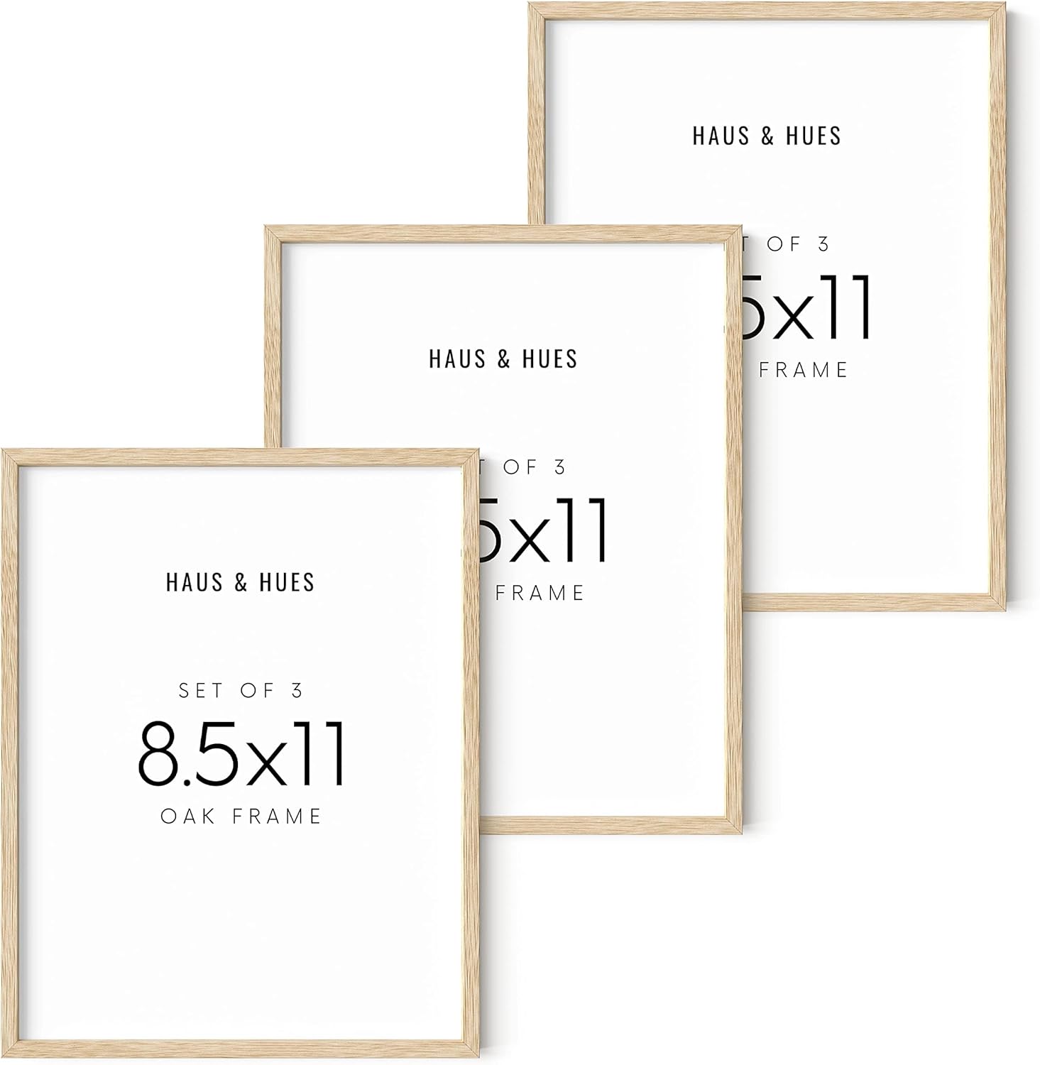 HAUS AND HUES Set of 3 Pennsylvania Oak Wood Picture Frames, 8.5x11 in, Beige, Minimalist Style, Shatterproof Plexiglass, Wall Mount, 3 Count