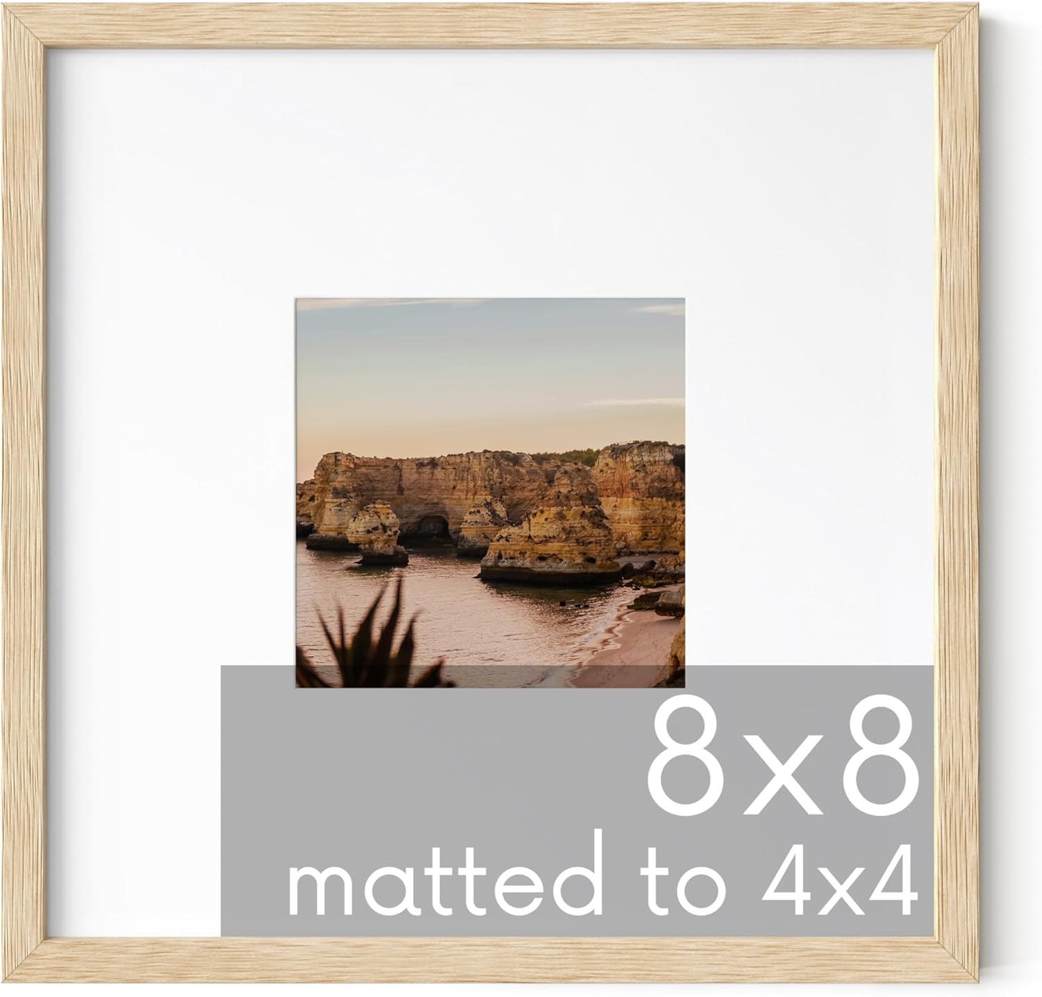 - SQUARE PICTURE FRAMES: The 8x8 frame with mat showcases the detail of the oak wood, with its unique grain patterns and rich hues. Our square matted frame will enhance your photographs and artwork, while the durable construction ensures your memories are exhibited for years to come. Embrace the seamless blend of natural materials and contemporary design with our 8x8 picture frames, bringing a touch of modernity to your cherished moments
