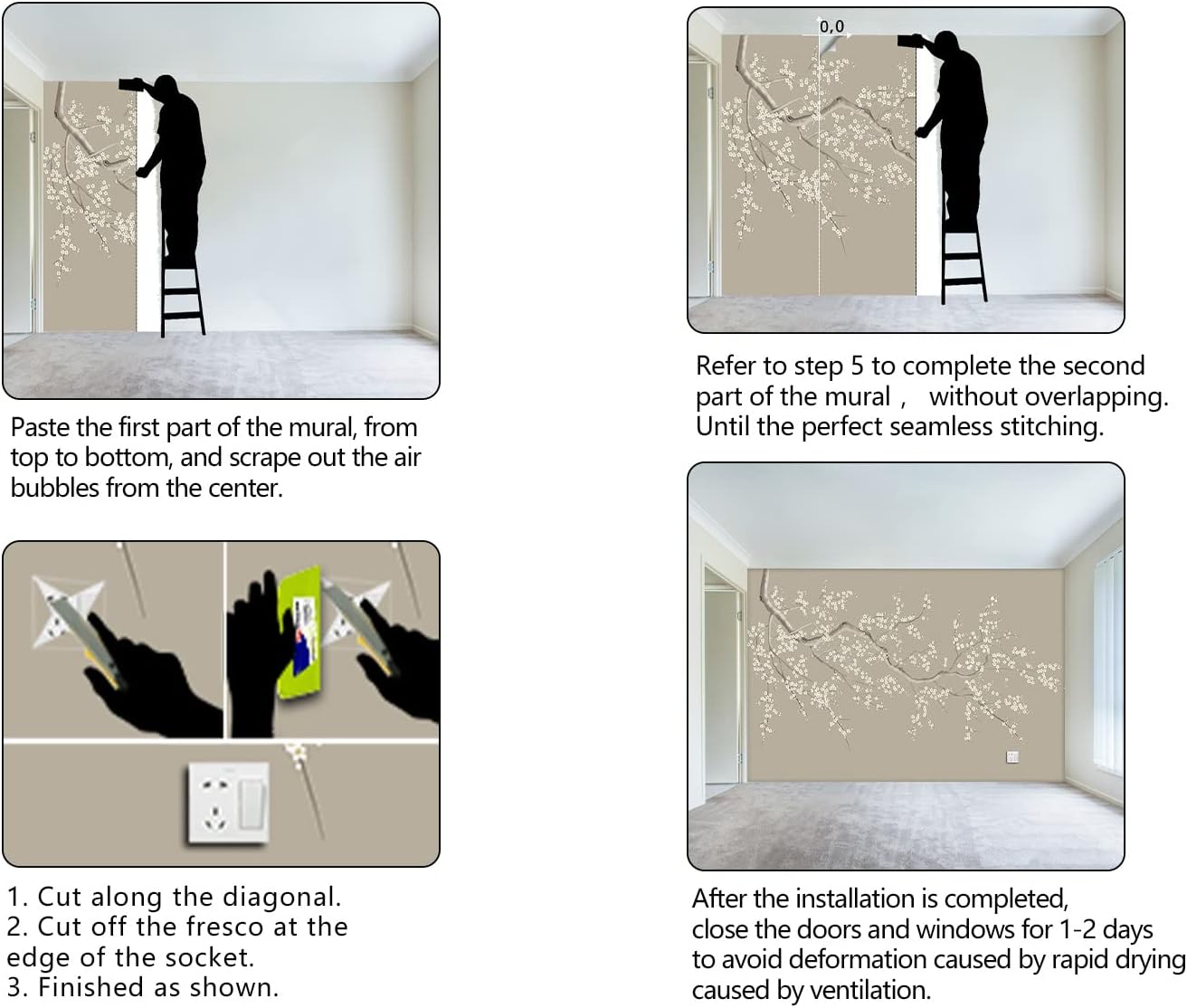 - It's easy to install: at the bottom of each mural we have a numbered sequence, You can refer to the instructions we provided and the main picture 6-7,just match the numbers and you'll be amazed!