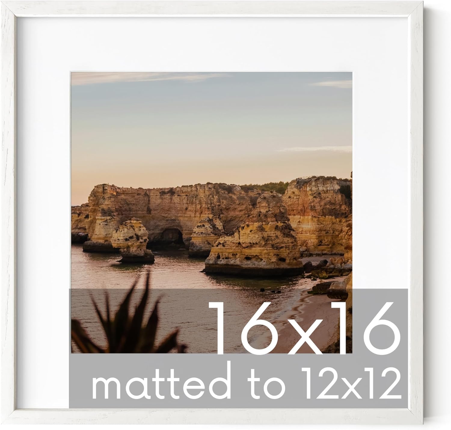 - SQUARE PICTURE FRAMES: Our 16 x 16 picture frame wood is meticulously constructed using natural oak wood, known for its timelessness and durability. The slim profile of the white frames 16x16 effortlessly blends into any interior decor, adding a contemporary touch. The clean lines and sleek design make the large square frame with mat a perfect choice for those seeking a stylish, understated display solution