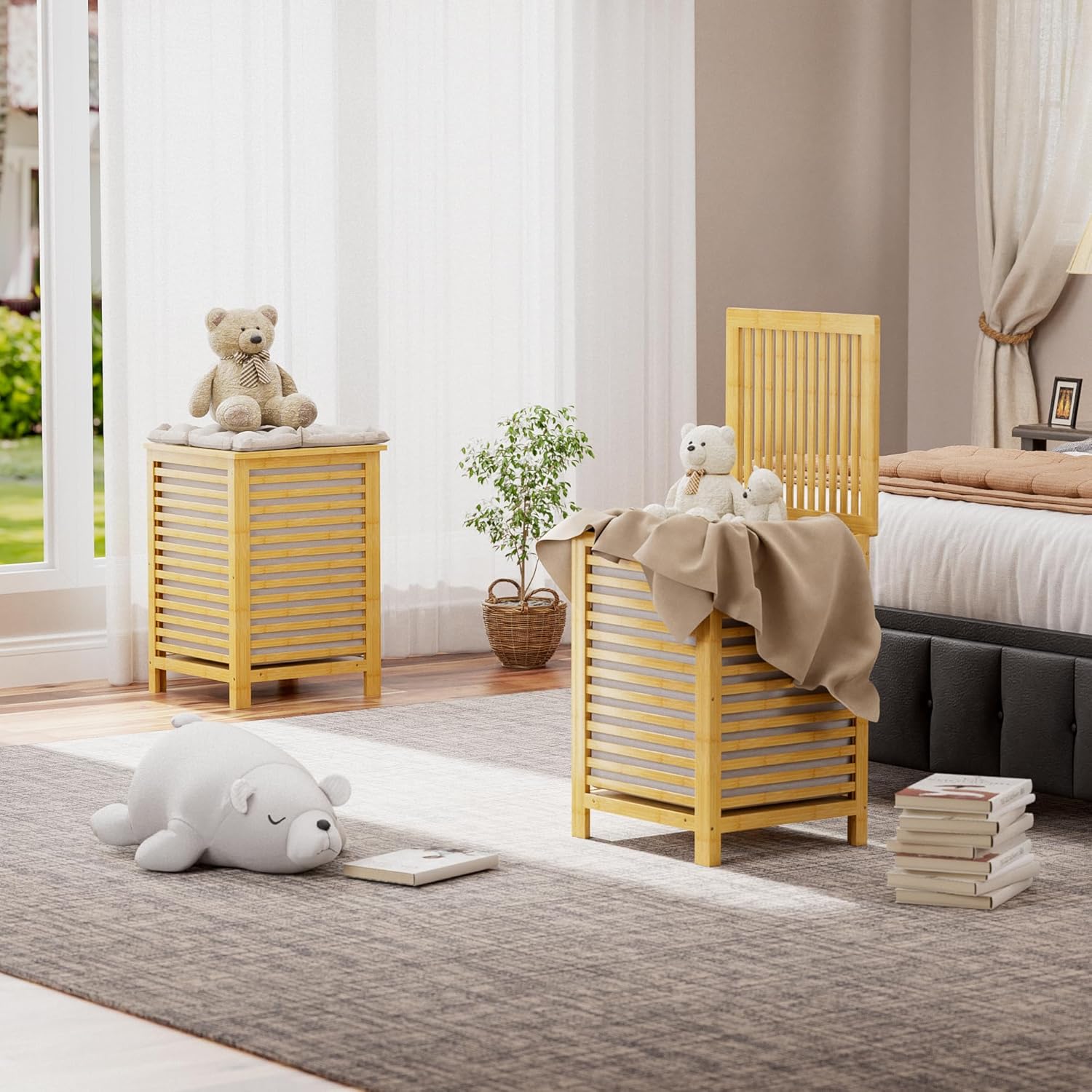 - ★ REMOVEABLE LINER BAG - The liner bag divided into two storage spaces is removable. When you need to do laundry, just open the lid, lift the handle of the inner bag, and carry it next to the washing machine. Very convenient for transportation from the laundry basket to the washing machine