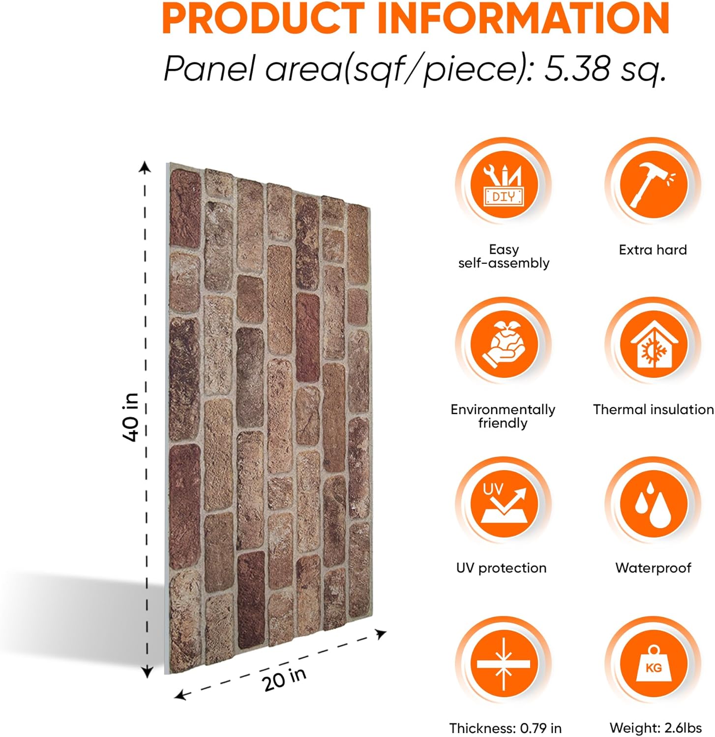 IZODEKOR 3D Wall Panels Brick Effect - Cladding, Stone Look, Styrofoam Facing for Living Room, Kitchen, Bathroom, Balcony, Bedroom, Back of Counter | Farmhouse Style (10 x Panels) - Covers 53 sq ft