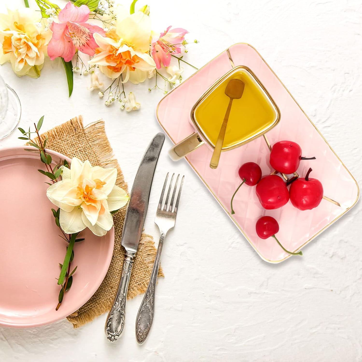 - Attractive and Elegant: the ceramic aesthetic coffee mug with saucer is characterized by handbag shapes and hand painted golden edges, and the color combination of pink and white with gold makes it more beautiful and graceful, which can bring both decorative and practical functions