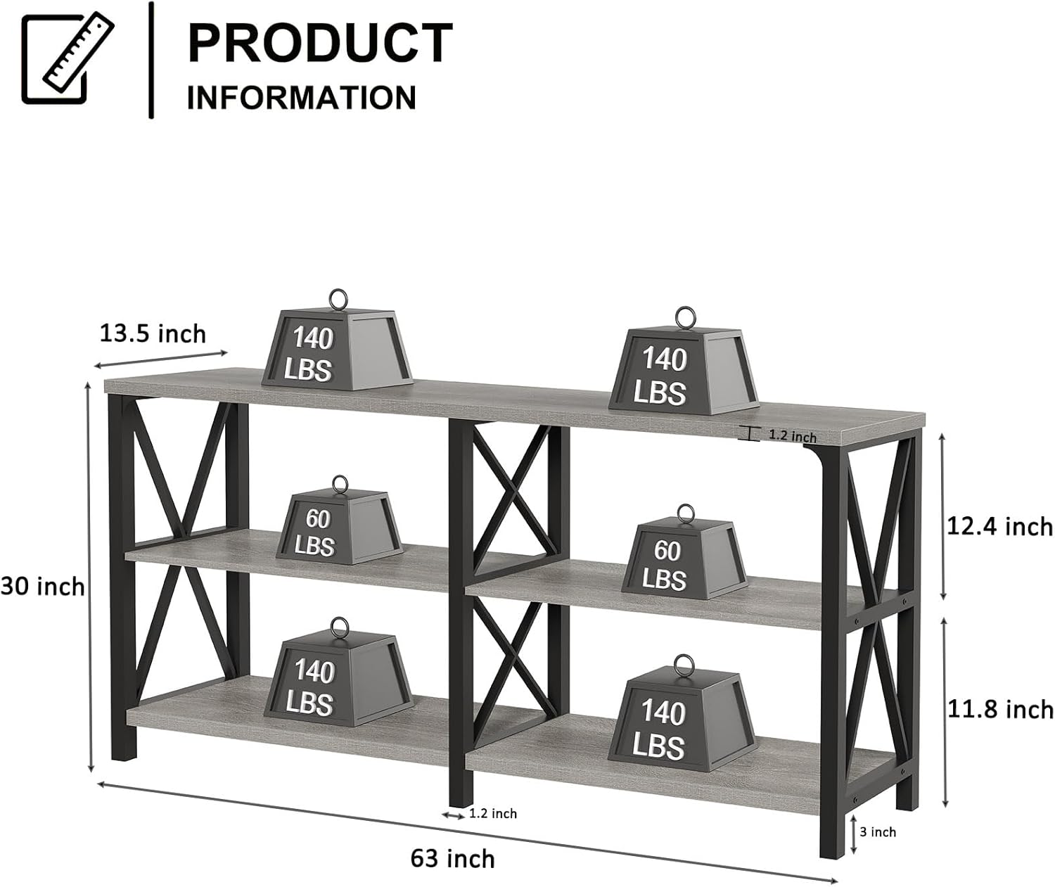 - Product Dimensions : 13.4"D x 63"W x 29.7"H