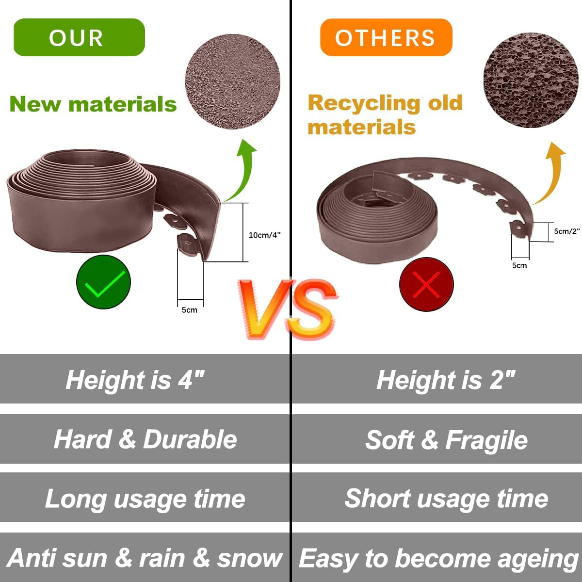 - < Durable & Flexible > Landscape Edging is made of premium PE material,which is flexible to be made straight or curve easily according your need. Easy to cut and durable to withstand the tough sunlight , heavy rain, snow etc.