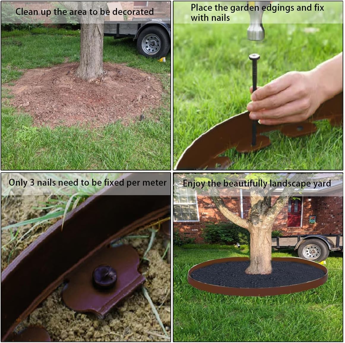 - < Easy Installation > Just need to bend and place the garden edgings on the shape of your design,then hammer in spikes into the ground fixed.