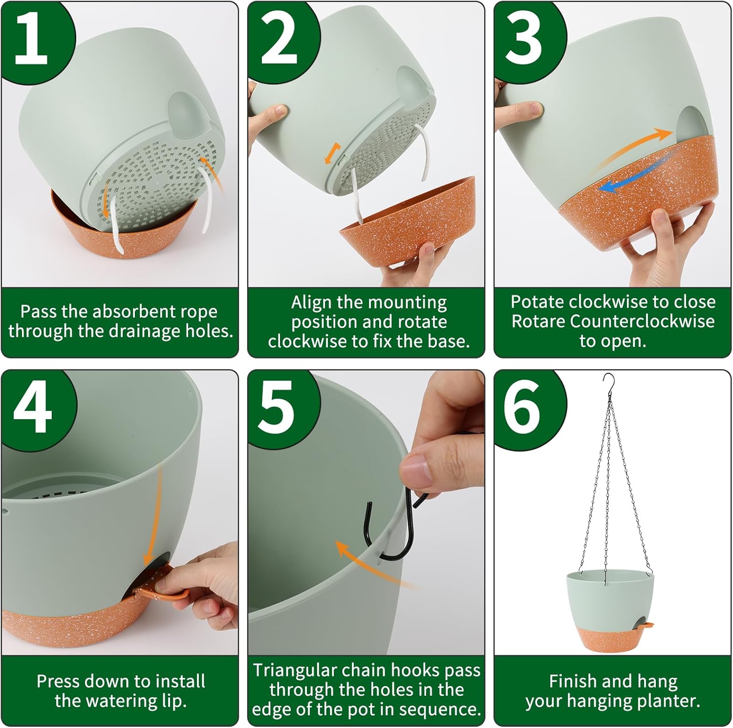 GARDIFE Hanging Planter, 10 inch Hanging planters for Indoor. Outdoor Plants, Self Watering Plant Pot, 2 Pack Large self Watering Hanging Planter, Green