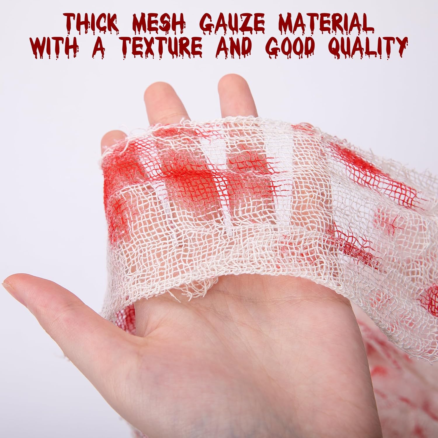 - Application Scenarios: You can use the creepy gauze to decorate doors, window, bathrooms, porches and walls when holding Halloween parties, midnight thriller challenge activities, etc.