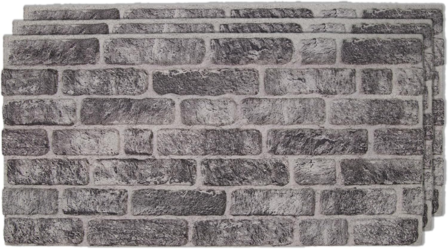IZODEKOR 3D Wall Panels Brick Effect - Cladding, Stone Look, Styrofoam Facing for Living Room, Kitchen, Bathroom, Balcony, Bedroom and Back of Counter | Old Town (3 Piece Panel) | Covers 16 sq ft