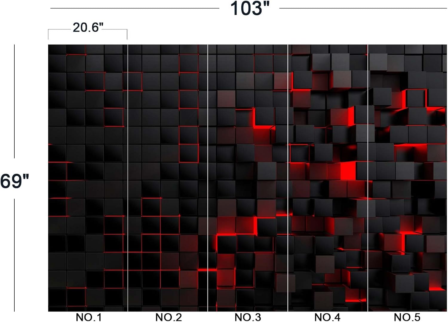 - The size of the wallpaper is 103" wide x 69" high and divided into 5 panels.