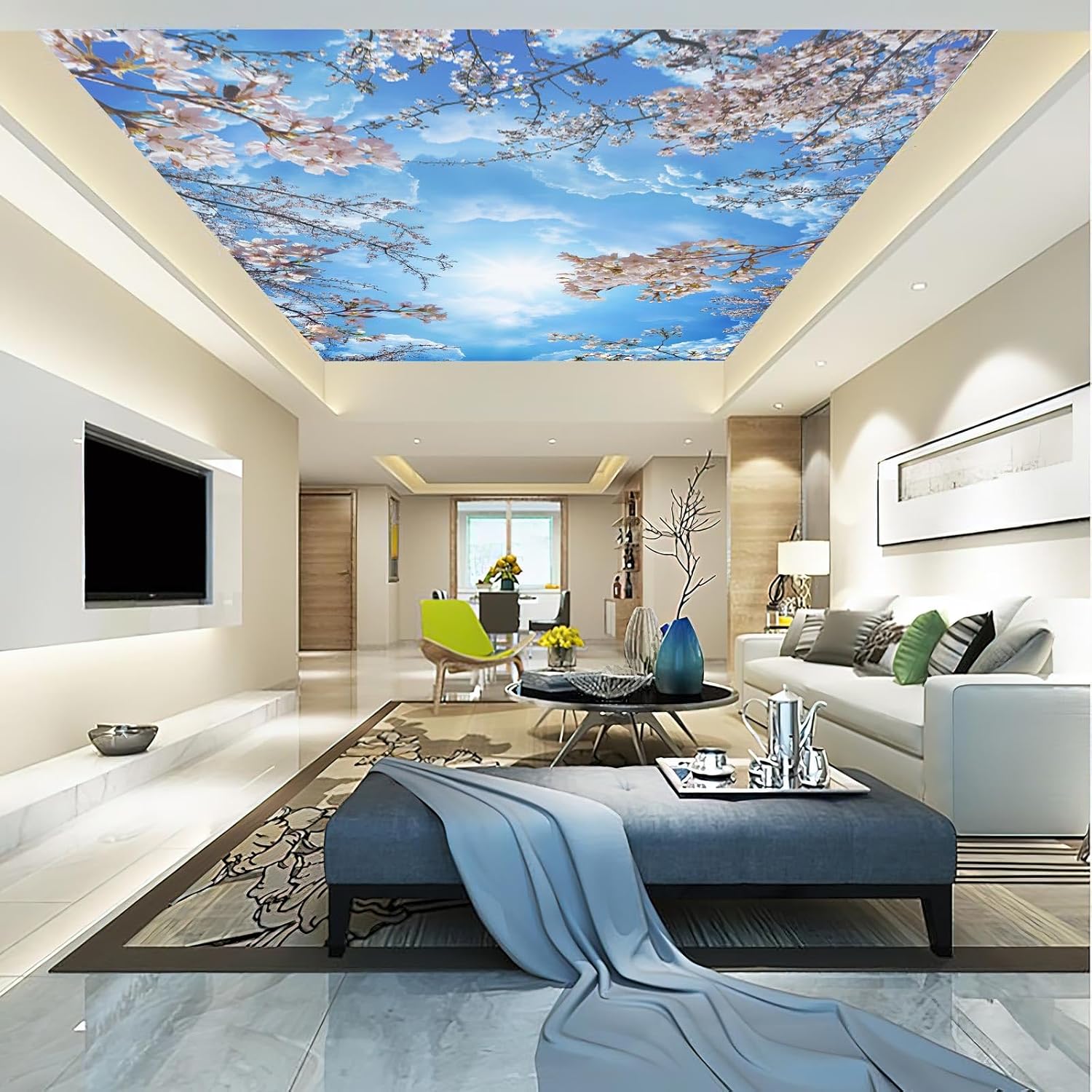 Sky Cherry Blossom Ceiling 3D Wall Mural Wallpaper 178" x 117"