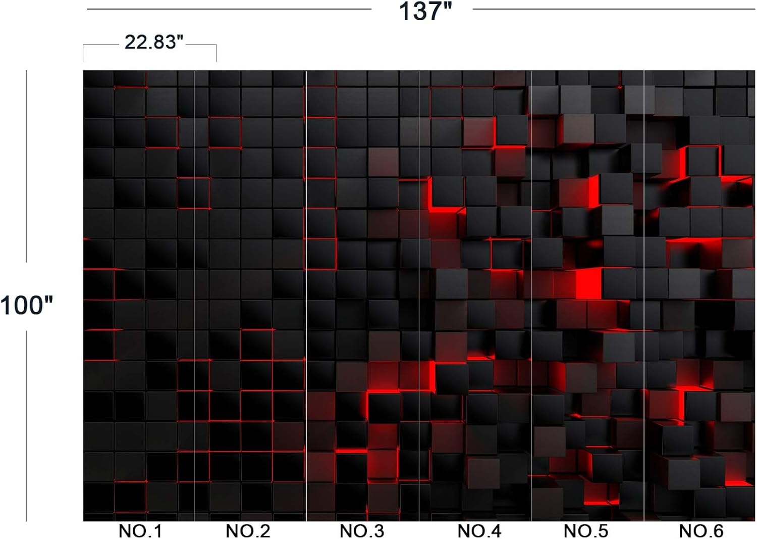 - The size of the wallpaper is 137" wide x 100" high and divided into 6 panels.