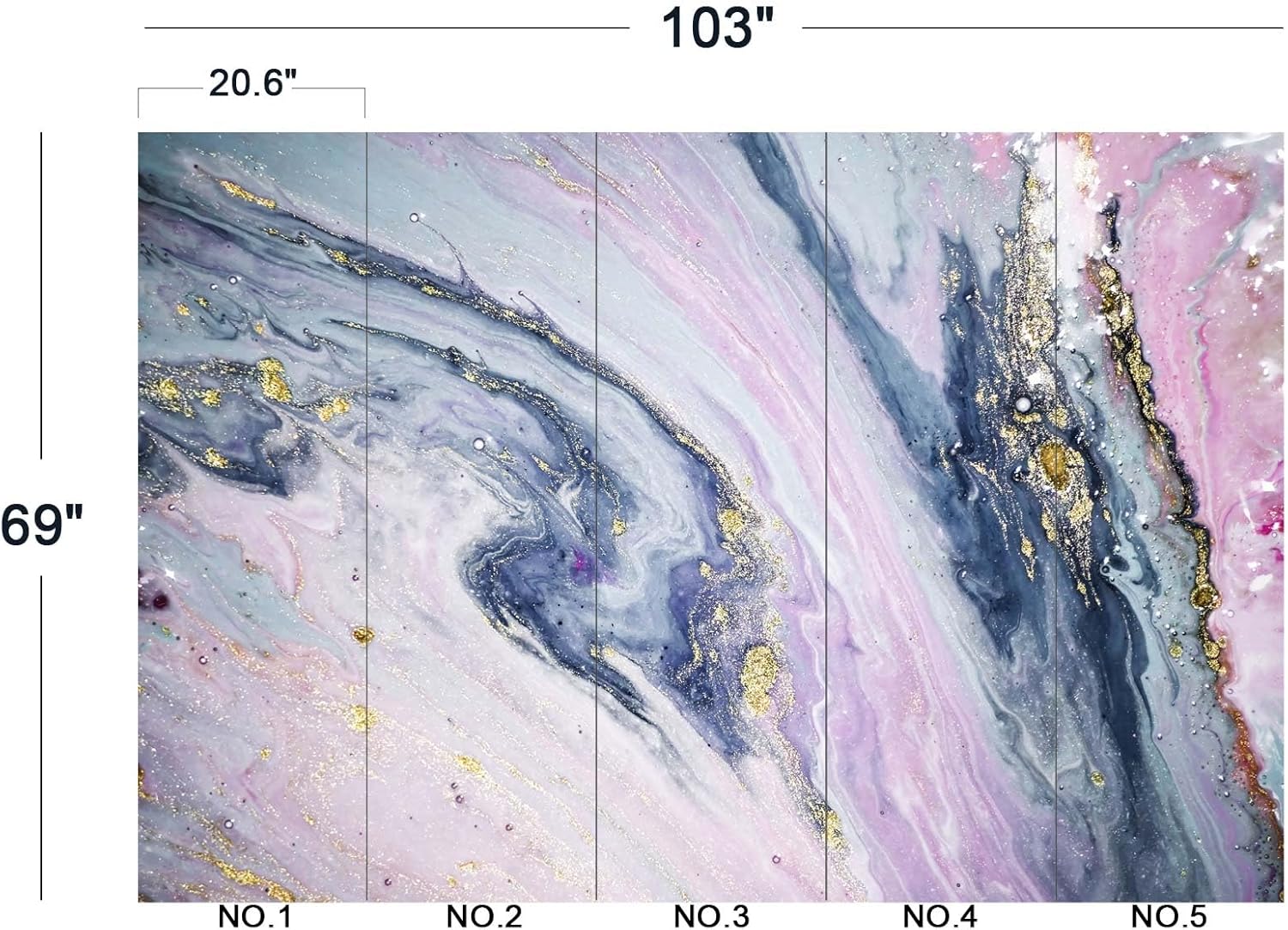 - The size of the wallpaper is 103" wide x 69" high and divided into 5 panels.