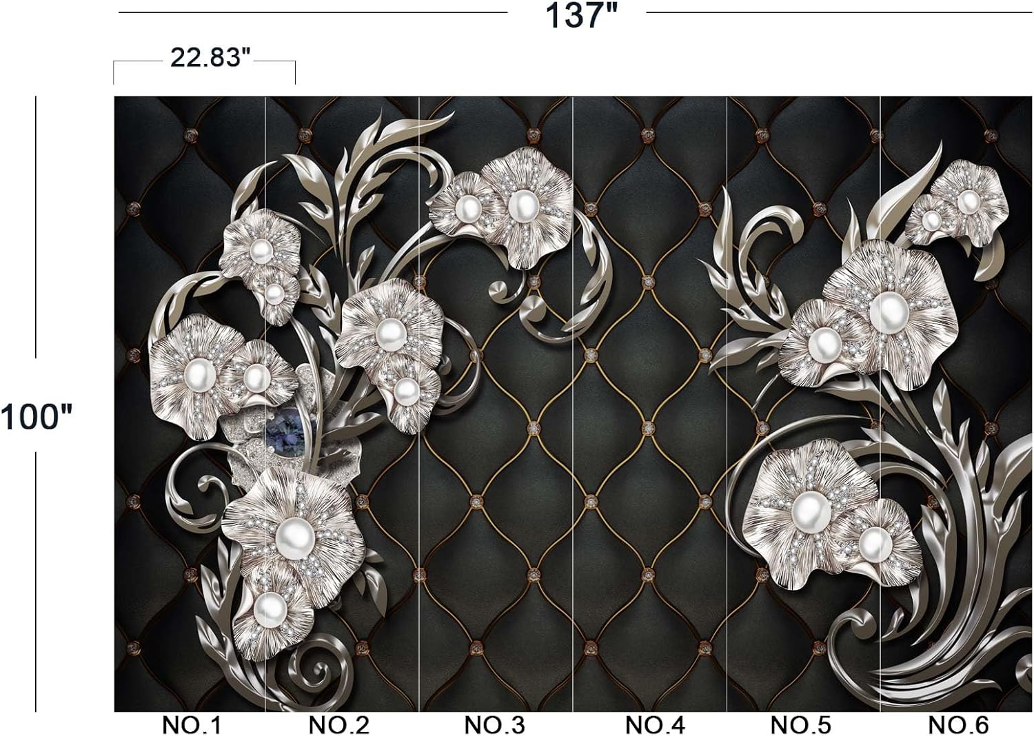 - The size of the wallpaper is 137" wide x 100" high and divided into 6 panels.