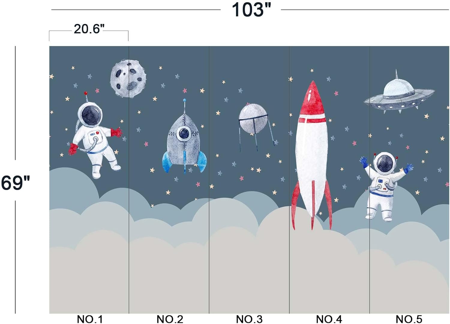 Children's Astronaut Rocket Moon Nursery Wall Mural Wallpaper 103" x 69"