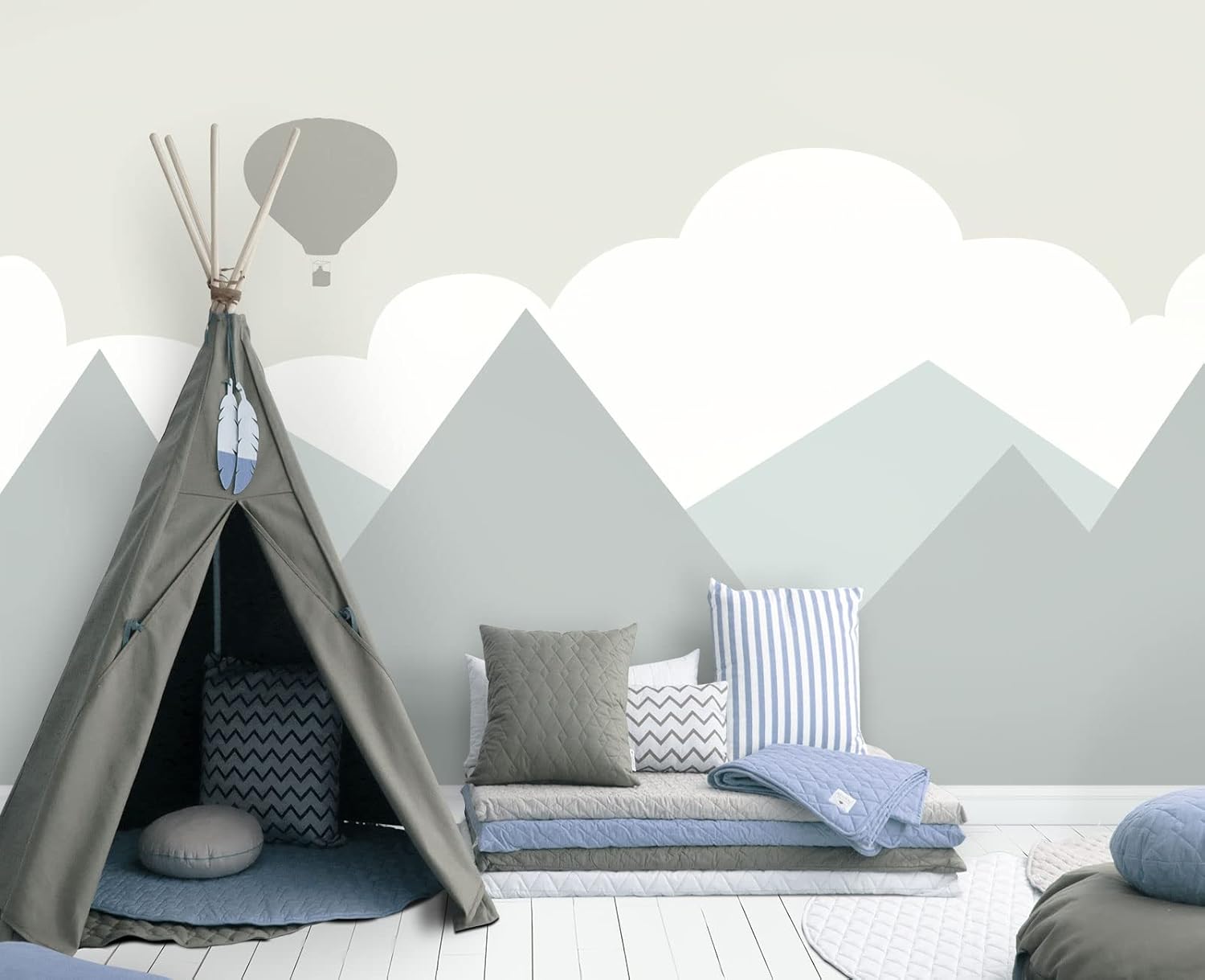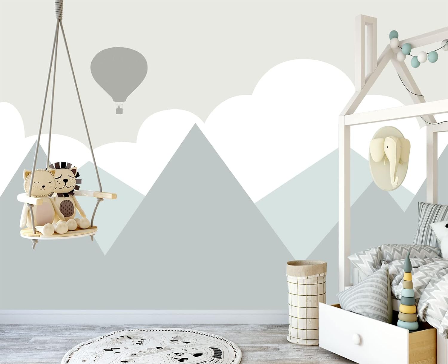 Cartoon Hot air Balloon Mountain Peak Baiyun Children's Nursery Wall Mural Wallpaper 178" x 117"