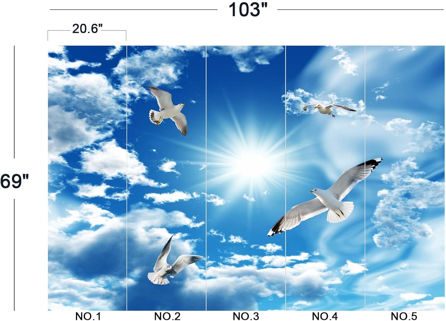 Blue Sky, White Clouds, Sunshine Seagull Ceiling Wall Mural Wallpaper 103" x 69"