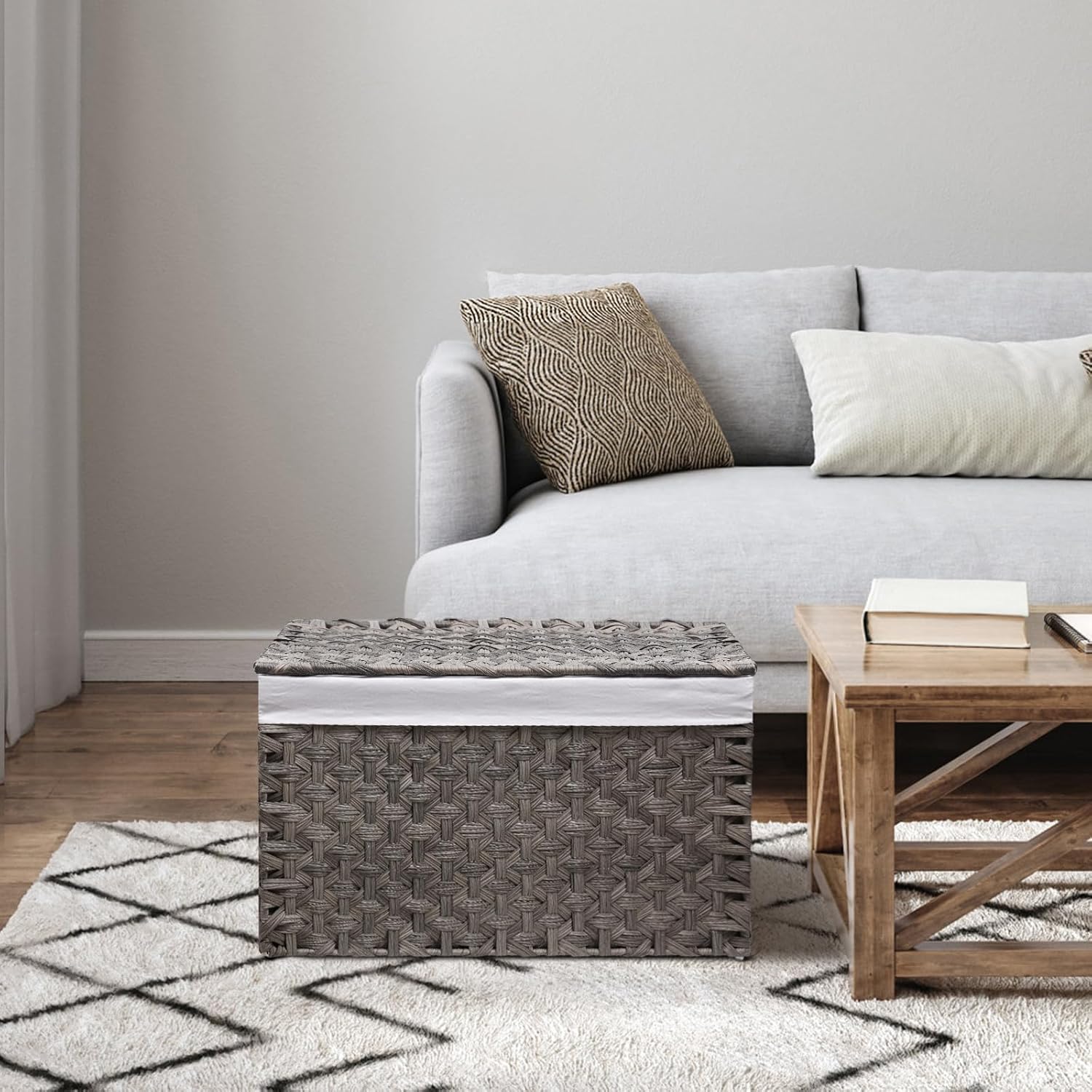 - [Washable Lining Bag] The included cotton lining bag is easily washable, ensuring the cleanliness of your stored items. This lining bag is securely fixed on the wicker basket with lid using two ropes, providing added stability and convenience