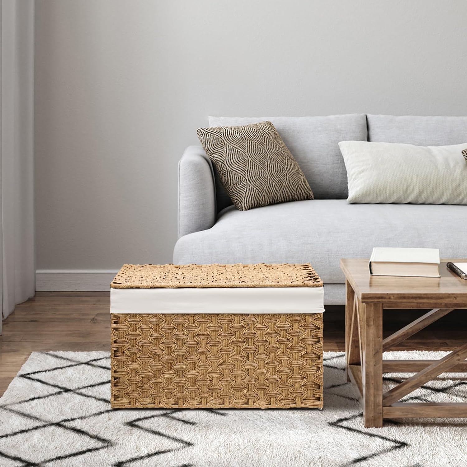 - [Washable Lining Bag] The included cotton lining bag is easily washable, ensuring the cleanliness of your stored items. This lining bag is securely fixed on the wicker basket with lid using two ropes, providing added stability and convenience