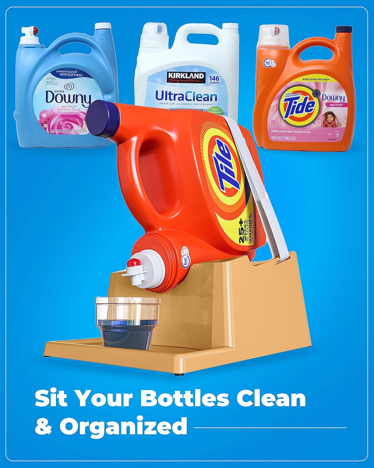- [Mess-Free Measuring:] The molded edge of this detergent holder for laundry room ensures your measuring cup stays in place, preventing drips and keeping your laundry space clean and organized.