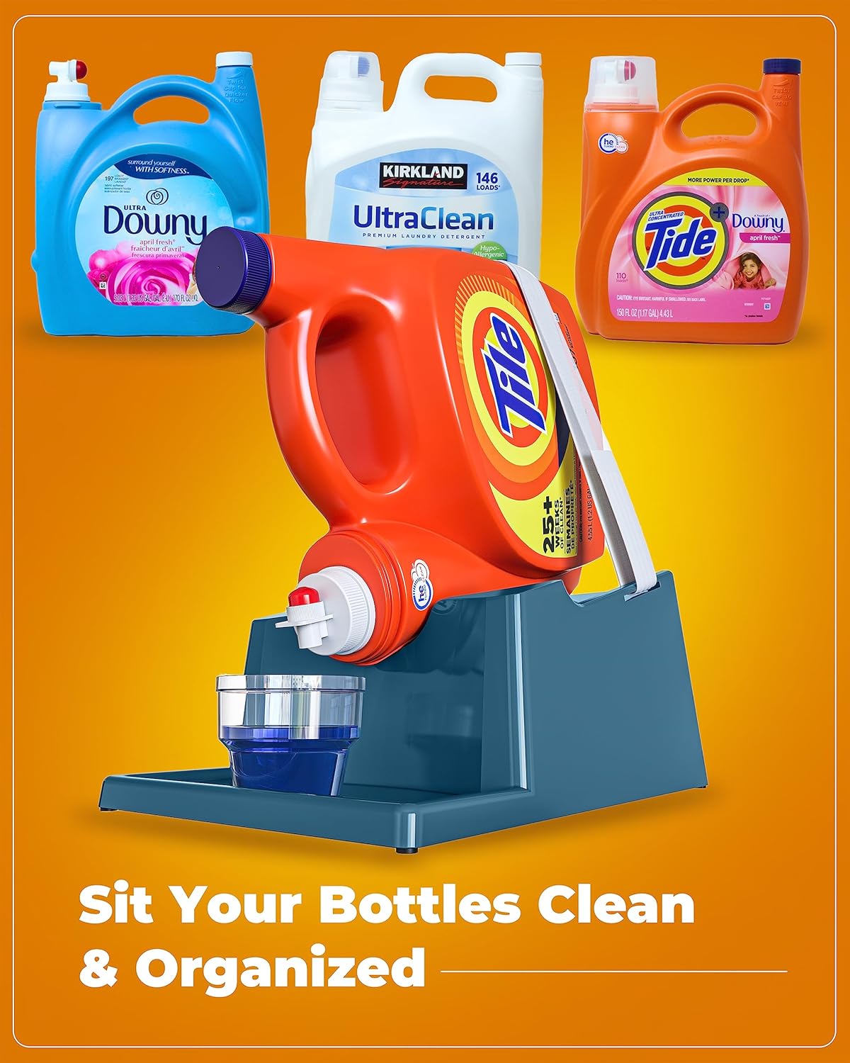- [Effortless Soap Dispensing:] The angled design of our laundry soap organizer allows for easy soap pouring without the need to tilt or lift heavy detergent bottles, saving you time and effort during laundry.