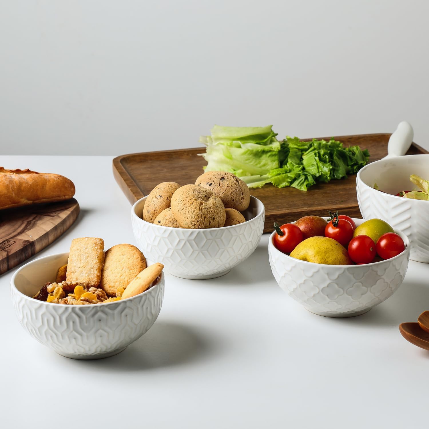 - Unique Embossed Design: These small bowls set feature a textured pattern that adds elegance and personality to your table; The embossed surface also offers a better grip, helping prevent slips and breakage
