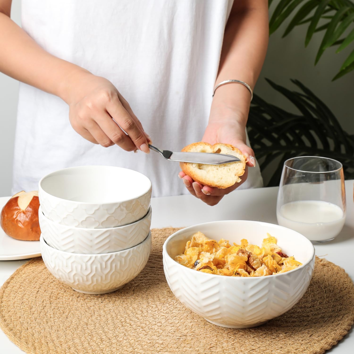 - Stackable & Space-Saving: These ceramic bowls stack neatly to save cabinet space; The well-stacked design keeps your cabinet tidy and elevates the overall look of your kitchen; Safe for freezer, microwave, and oven use